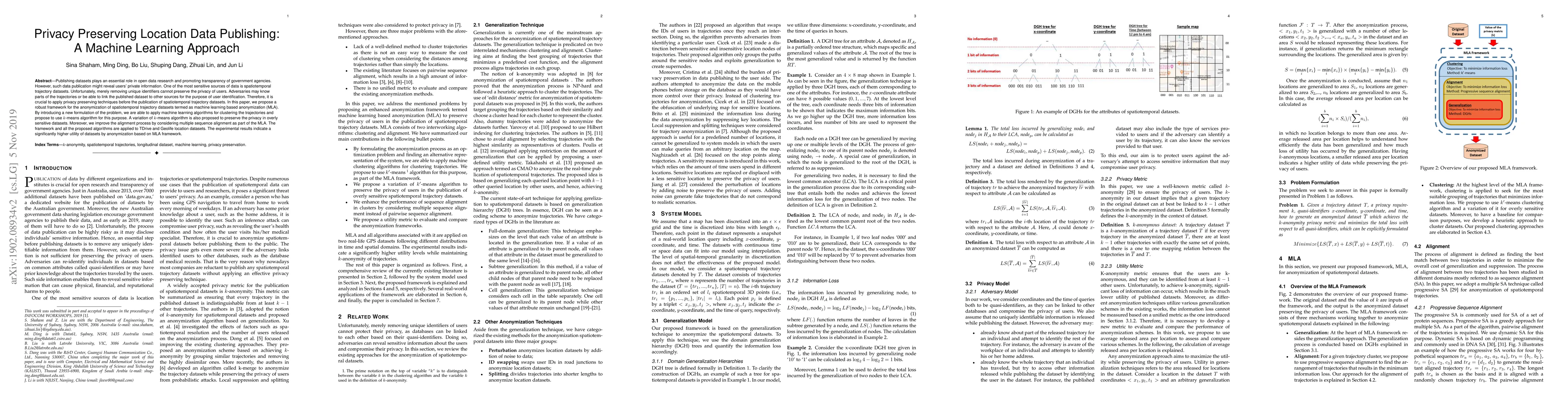 This paper proposes a machine learning-based anonymization (MLA) framework to protect the privacy of users in spatiotemporal trajectory datasets before publication. The framework employs $k$-means clustering and a variation to enhance privacy, along with multiple sequence alignment, and demonstrates improved dataset utility through experiments on TDrive and Geolife datasets.