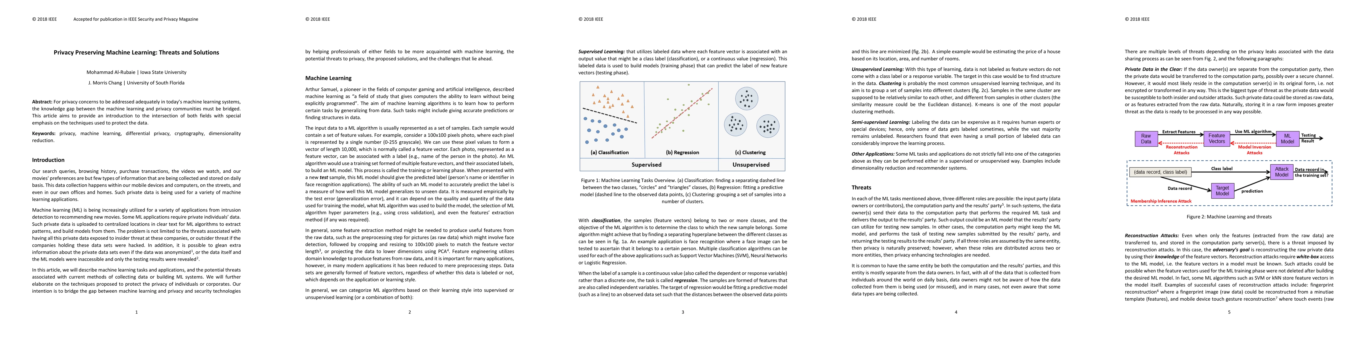 For privacy concerns to be addressed adequately in current machine learning systems, the knowledge gap between the machine learning and privacy communities must be bridged. This article aims to provide an introduction to the intersection of both fields with special emphasis on the techniques used to protect the data.