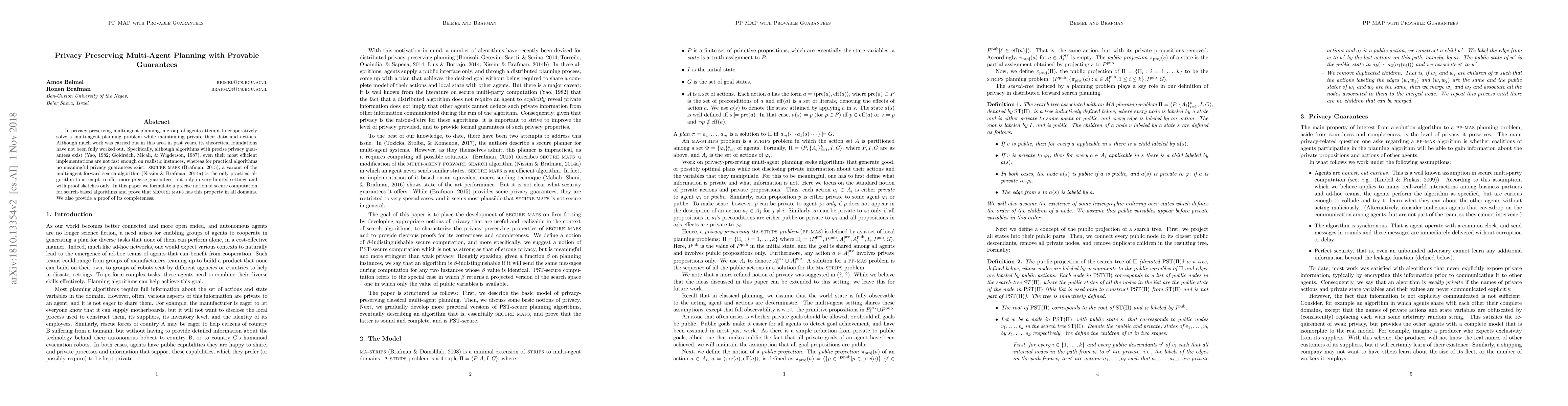 This paper introduces a new formulation of secure computation for search-based multi-agent planning algorithms, proving that Secure-MAFS, a variant of the multi-agent forward search algorithm, provides precise privacy guarantees across all domains, addressing the gap between theoretical efficiency and practical applicability.
