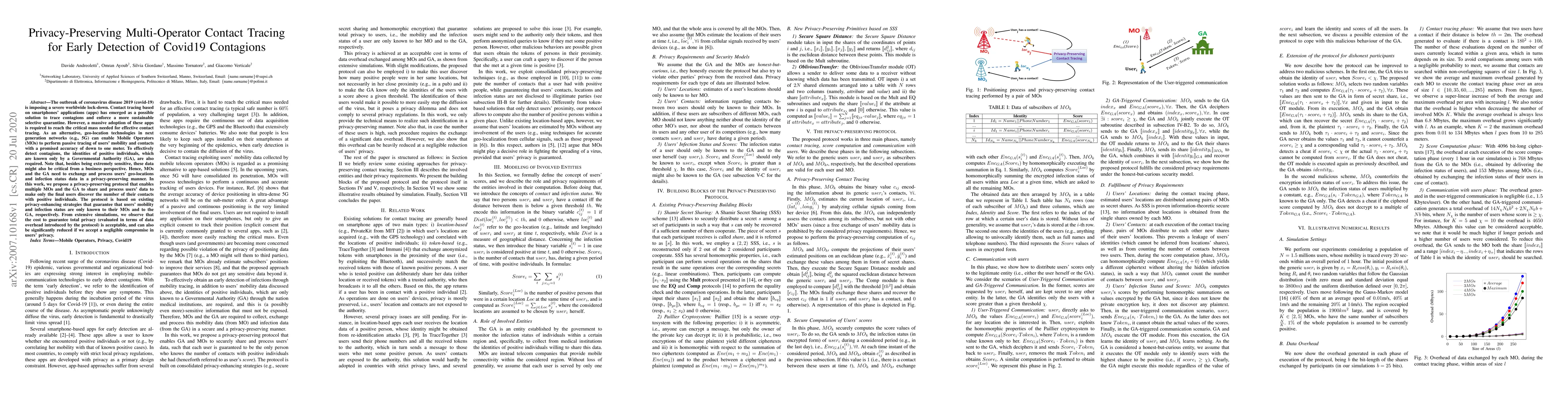 A new protocol enables multiple Mobile Operators and a Governmental Authority to share and process users' data in a privacy-preserving manner for contact tracing, balancing security with acceptable data overhead.