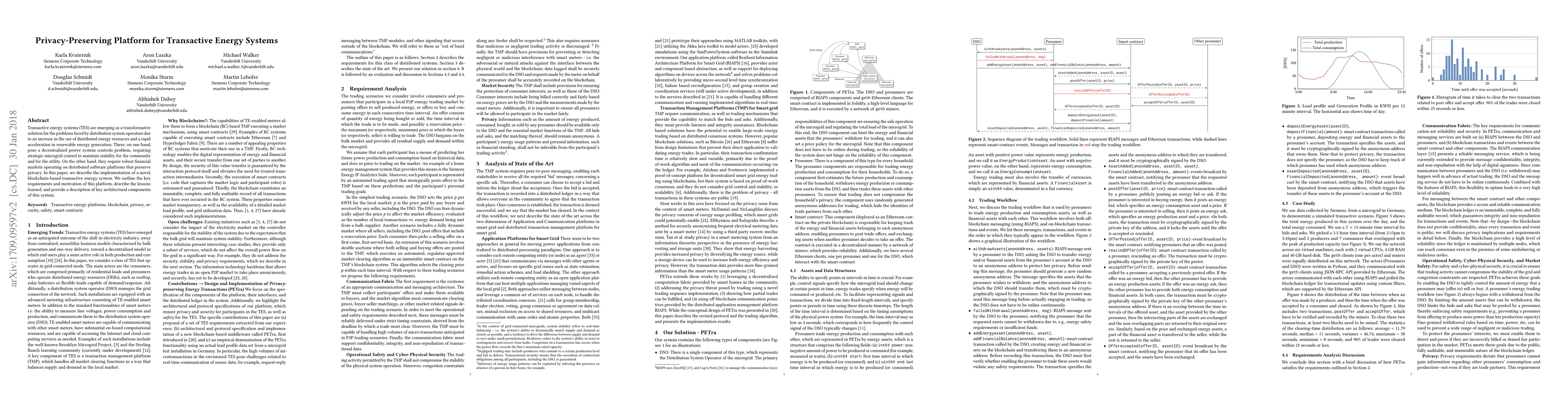 This paper presents a blockchain-based privacy-preserving platform for transactive energy systems (TES) to manage decentralized power controls and robust financial markets while ensuring data privacy. The authors describe the system's architectural components and share key lessons learned from its implementation.