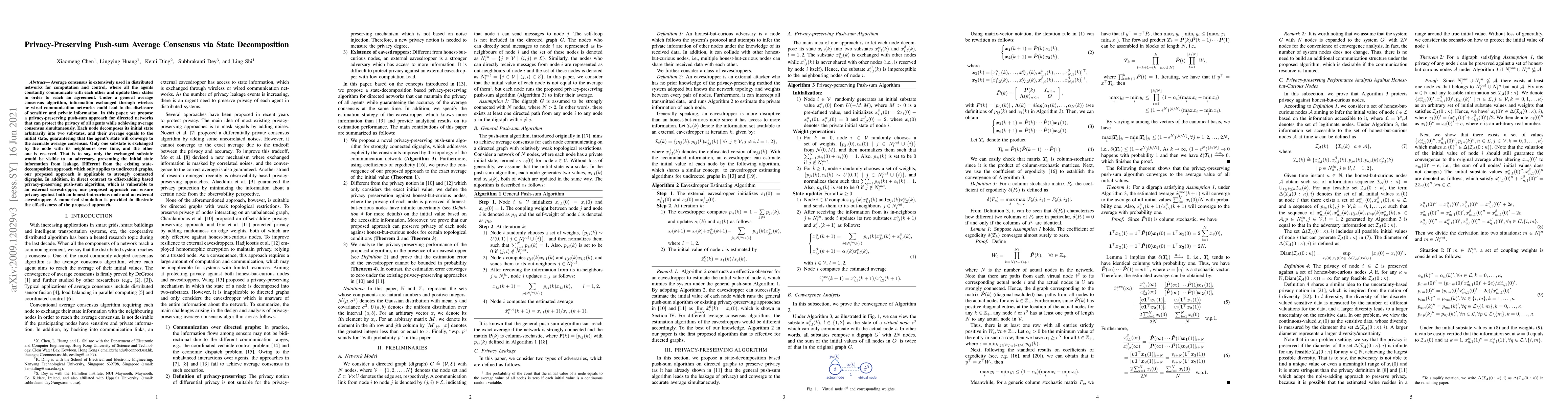 This paper proposes a privacy-preserving push-sum algorithm for directed networks that protects agent privacy while achieving average consensus. Each node decomposes its state into two substates, exchanging only one substate with neighbors, ensuring the other remains private.