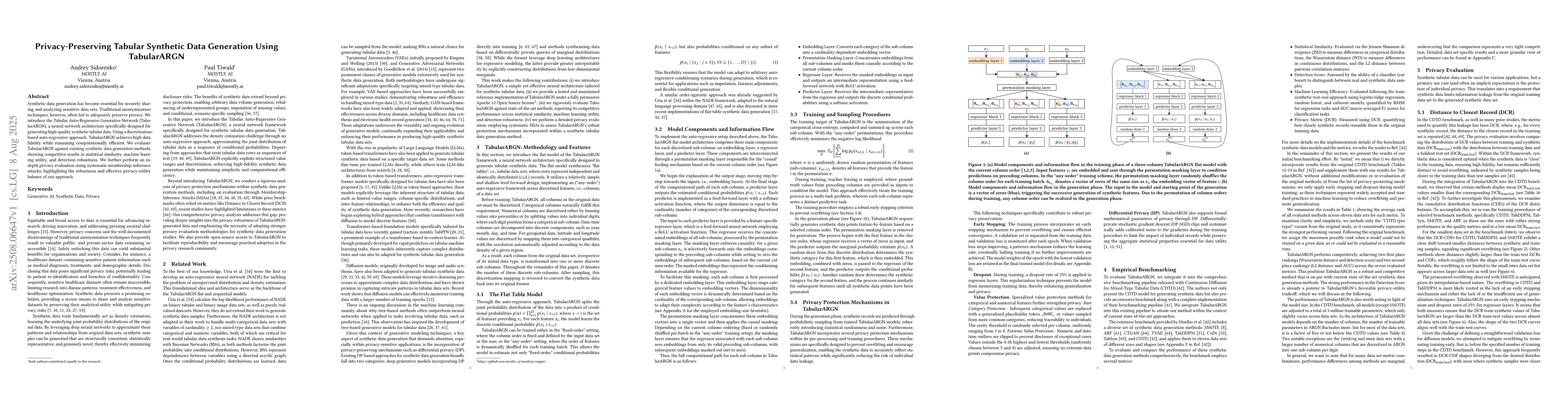 Synthetic data generation has become essential for securely sharing and analyzing sensitive data sets. Traditional anonymization techniques, however, often fail to adequately preserve privacy. We introduce the Tabular Auto-Regressive Generative Network (TabularARGN), a neural network architecture specifically designed for generating high-quality synthetic tabular data. Using a discretization-based auto-regressive approach, TabularARGN achieves high data fidelity while remaining computationally efficient. We evaluate TabularARGN against existing synthetic data generation methods, showing competitive results in statistical similarity, machine learning utility, and detection robustness. We further perform an in-depth privacy evaluation using systematic membership-inference attacks, highlighting the robustness and effective privacy-utility balance of our approach.