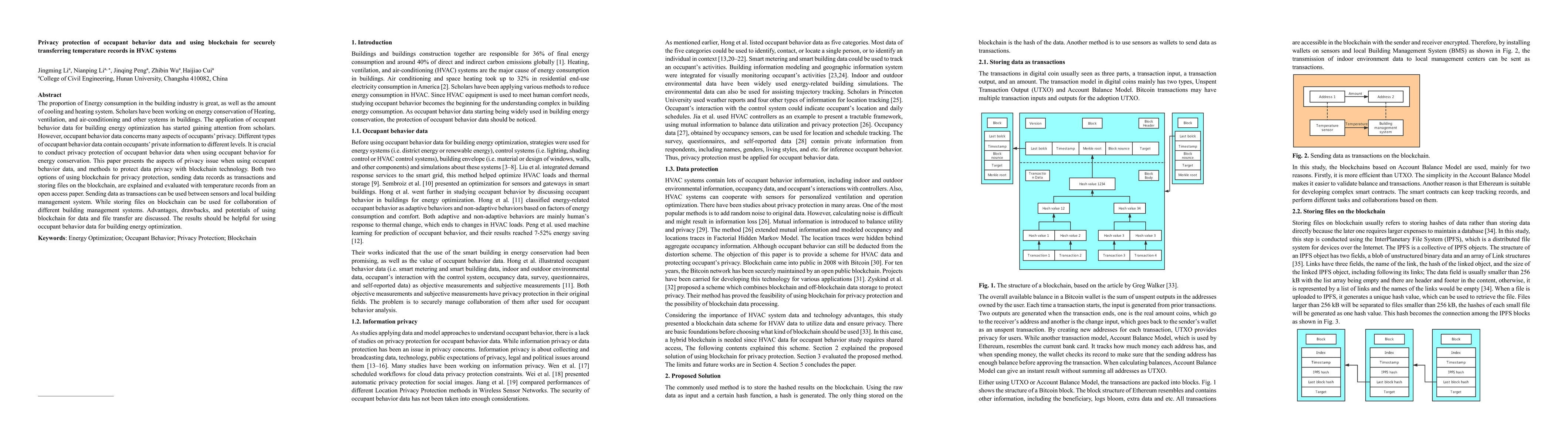 This paper explores privacy concerns in using occupant behavior data for building energy optimization and proposes blockchain technology for secure data transfer. It evaluates two blockchain methods: sending temperature records as transactions and storing files on the blockchain, highlighting their advantages, drawbacks, and potential applications in HVAC systems.