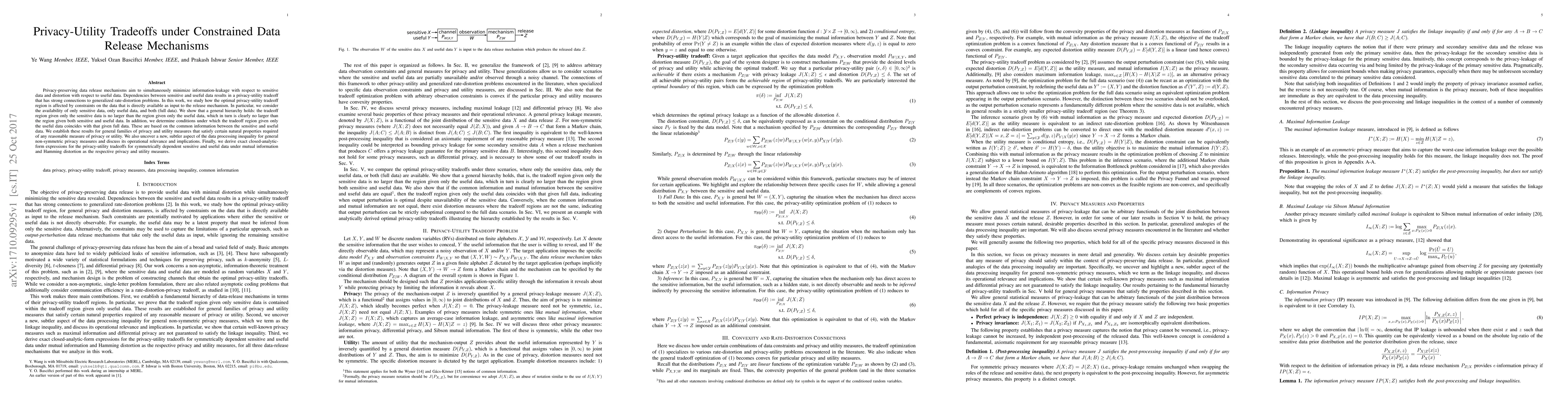 Privacy-preserving data release mechanisms aim to simultaneously minimize information-leakage with respect to sensitive data and distortion with respect to useful data. Dependencies between sensitive and useful data results in a privacy-utility tradeoff that has strong connections to generalized rate-distortion problems. In this work, we study how the optimal privacy-utility tradeoff region is affected by constraints on the data that is directly available as input to the release mechanism. In particular, we consider the availability of only sensitive data, only useful data, and both (full data). We show that a general hierarchy holds: the tradeoff region given only the sensitive data is no larger than the region given only the useful data, which in turn is clearly no larger than the region given both sensitive and useful data. In addition, we determine conditions under which the tradeoff region given only the useful data coincides with that given full data. These are based on the common information between the sensitive and useful data. We establish these results for general families of privacy and utility measures that satisfy certain natural properties required of any reasonable measure of privacy or utility. We also uncover a new, subtler aspect of the data processing inequality for general non-symmetric privacy measures and discuss its operational relevance and implications. Finally, we derive exact closed-analytic-form expressions for the privacy-utility tradeoffs for symmetrically dependent sensitive and useful data under mutual information and Hamming distortion as the respective privacy and utility measures.