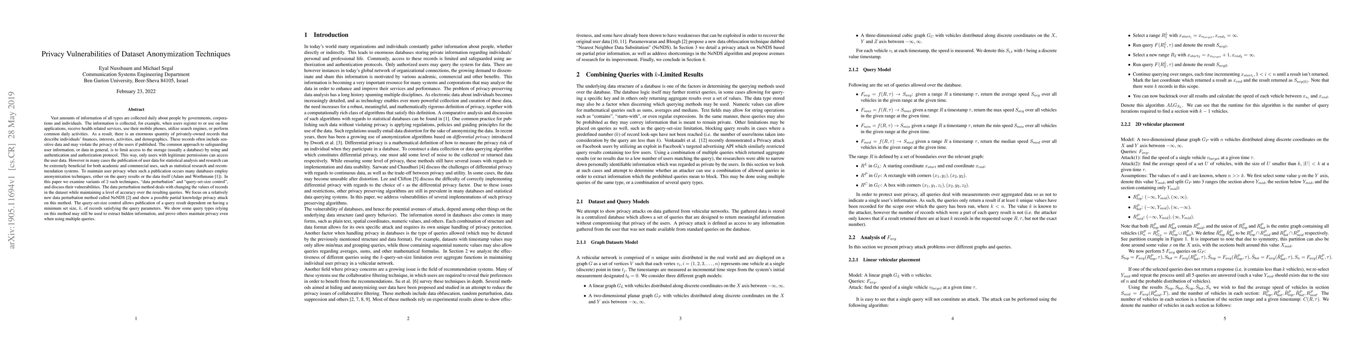 A study examines the privacy vulnerabilities of two dataset anonymization techniques, data perturbation and query-set-size control, revealing potential weaknesses in protecting user information.