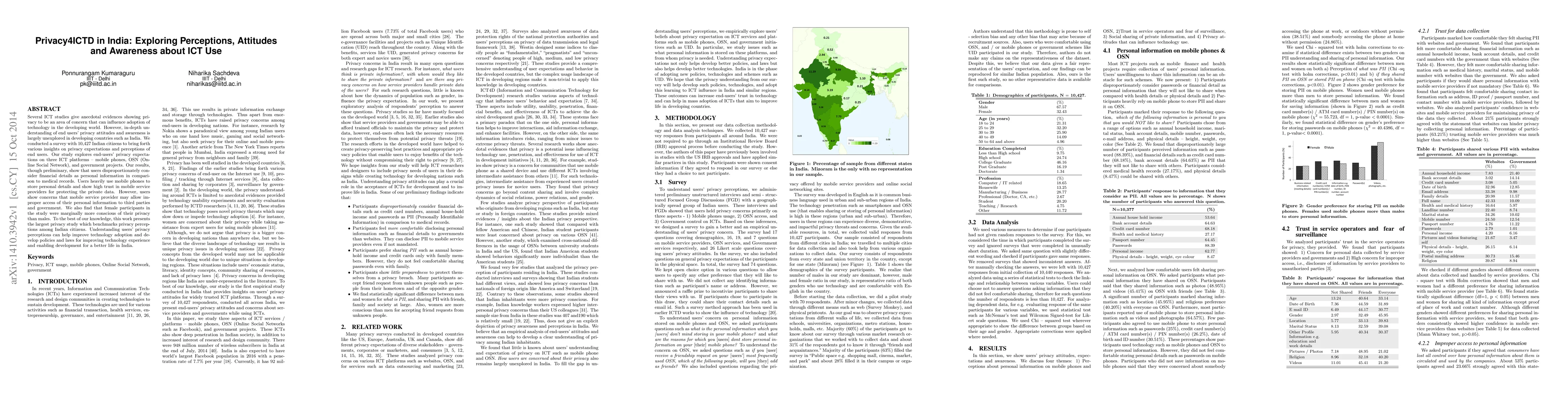 This study surveys 10,427 Indian citizens to explore privacy perceptions and attitudes towards ICT use, revealing significant concerns about data protection, especially regarding financial details. Female participants showed marginally higher privacy consciousness compared to males.