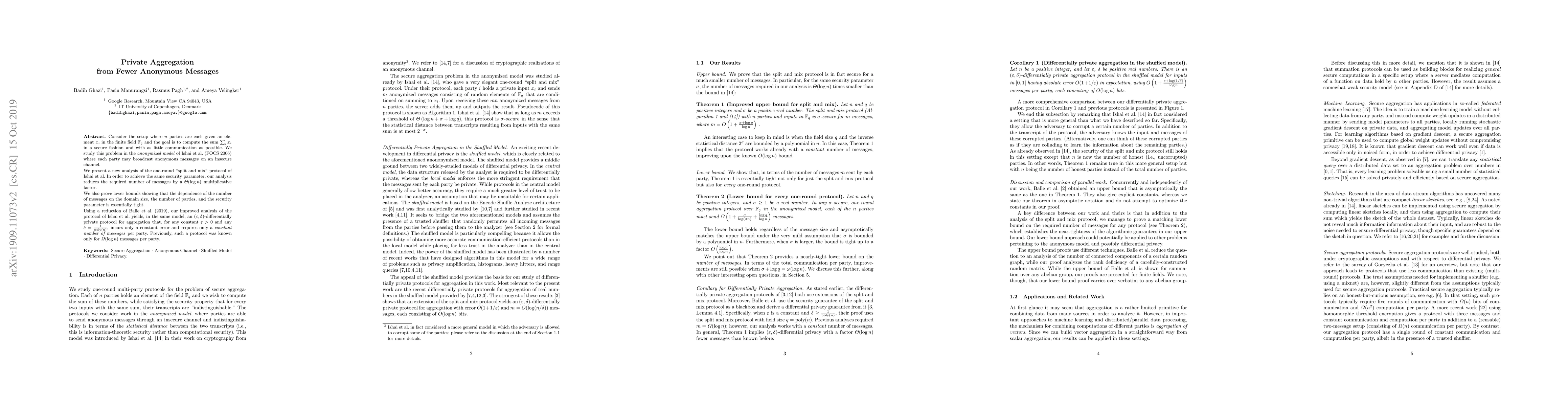 Consider the setup where $n$ parties are each given a number $x_i \in \mathbb{F}_q$ and the goal is to compute the sum $\sum_i x_i$ in a secure fashion and with as little communication as possible. We study this problem in the anonymized model of Ishai et al. (FOCS 2006) where each party may broadcast anonymous messages on an insecure channel. We present a new analysis of the one-round "split and mix" protocol of Ishai et al. In order to achieve the same security parameter, our analysis reduces the required number of messages by a $\Theta(\log n)$ multiplicative factor. We complement our positive result with lower bounds showing that the dependence of the number of messages on the domain size, the number of parties, and the security parameter is essentially tight. Using a reduction of Balle et al. (2019), our improved analysis of the protocol of Ishai et al. yields, in the same model, an $\left(\varepsilon, \delta\right)$-differentially private protocol for aggregation that, for any constant $\varepsilon > 0$ and any $\delta = \frac{1}{\mathrm{poly}(n)}$, incurs only a constant error and requires only a constant number of messages per party. Previously, such a protocol was known only for $\Omega(\log n)$ messages per party.