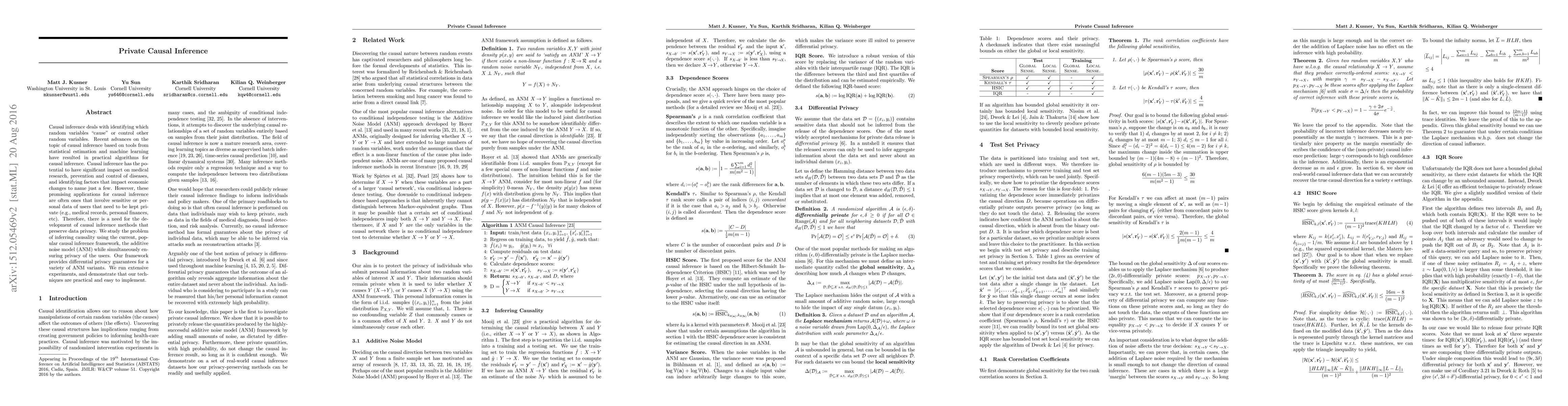 This paper explores the development of causal inference methods that maintain user privacy, focusing on the additive noise model (ANM). It introduces a framework that provides differential privacy guarantees while preserving the effectiveness of causal inference, demonstrating practical and easy-to-implement techniques through extensive experiments.