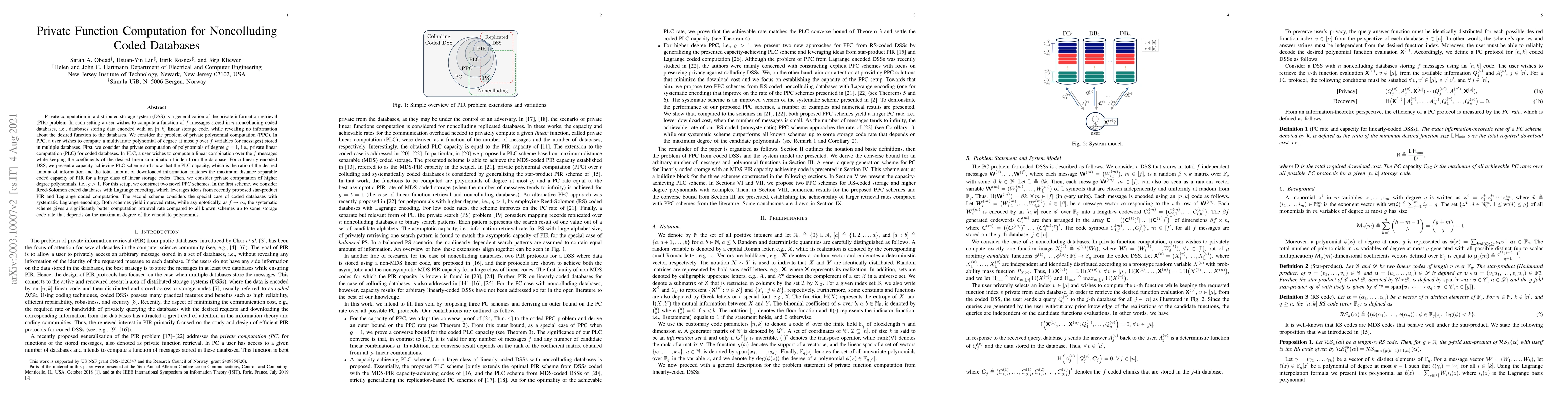 Private computation in a distributed storage system (DSS) is a generalization of the private information retrieval (PIR) problem. In such setting a user wishes to compute a function of $f$ messages stored in $n$ noncolluding coded databases, i.e., databases storing data encoded with an $[n,k]$ linear storage code, while revealing no information about the desired function to the databases. We consider the problem of private polynomial computation (PPC). In PPC, a user wishes to compute a multivariate polynomial of degree at most $g$ over $f$ variables (or messages) stored in multiple databases. First, we consider the private computation of polynomials of degree $g=1$, i.e., private linear computation (PLC) for coded databases. In PLC, a user wishes to compute a linear combination over the $f$ messages while keeping the coefficients of the desired linear combination hidden from the database. For a linearly encoded DSS, we present a capacity-achieving PLC scheme and show that the PLC capacity, which is the ratio of the desired amount of information and the total amount of downloaded information, matches the maximum distance separable coded capacity of PIR for a large class of linear storage codes. Then, we consider private computation of higher degree polynomials, i.e., $g>1$. For this setup, we construct two novel PPC schemes. In the first scheme, we consider Reed-Solomon coded databases with Lagrange encoding, which leverages ideas from recently proposed star-product PIR and Lagrange coded computation. The second scheme considers the special case of coded databases with systematic Lagrange encoding. Both schemes yield improved rates, while asymptotically, as $f\rightarrow \infty$, the systematic scheme gives a significantly better computation retrieval rate compared to all known schemes up to some storage code rate that depends on the maximum degree of the candidate polynomials.