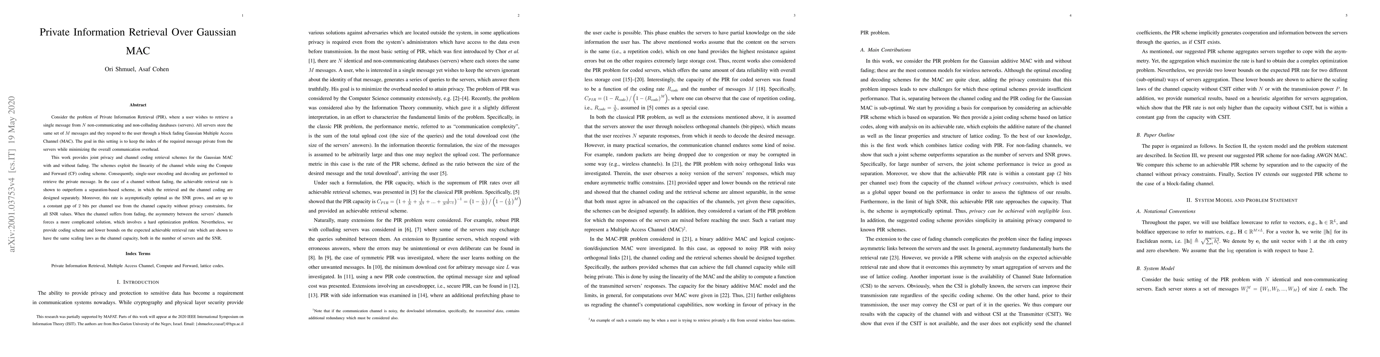 Consider the problem of Private Information Retrieval (PIR), where a user wishes to retrieve a single message from $N$ non-communicating and non-colluding databases (servers). All servers store the same set of $M$ messages and they respond to the user through a block fading Gaussian Multiple Access Channel (MAC). The goal in this setting is to keep the index of the required message private from the servers while minimizing the overall communication overhead. This work provides joint privacy and channel coding retrieval schemes for the Gaussian MAC with and without fading. The schemes exploit the linearity of the channel while using the Compute and Forward (CF) coding scheme. Consequently, single-user encoding and decoding are performed to retrieve the private message. In the case of a channel without fading, the achievable retrieval rate is shown to outperform a separation-based scheme, in which the retrieval and the channel coding are designed separately. Moreover, this rate is asymptotically optimal as the SNR grows, and are up to a constant gap of $2$ bits per channel use from the channel capacity without privacy constraints, for all SNR values. When the channel suffers from fading, the asymmetry between the servers' channels forces a more complicated solution, which involves a hard optimization problem. Nevertheless, we provide coding scheme and lower bounds on the expected achievable retrieval rate which are shown to have the same scaling laws as the channel capacity, both in the number of servers and the SNR.