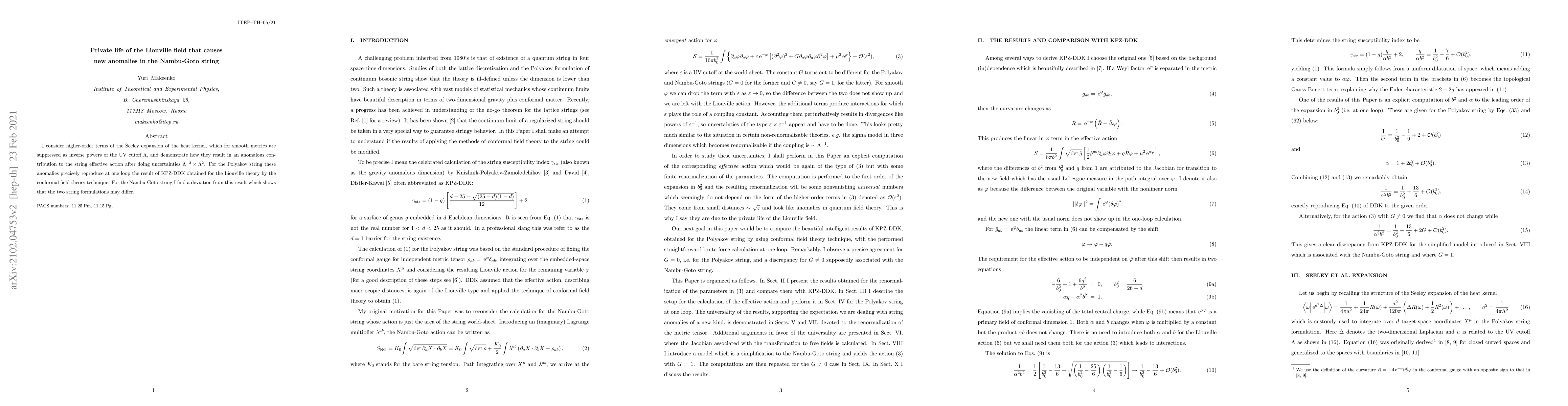 This paper explores higher-order terms in the Seeley expansion of the heat kernel, revealing anomalous contributions to the string effective action. For the Polyakov string, these anomalies match results from Liouville theory, but for the Nambu-Goto string, a deviation is found, suggesting differences between the two string formulations.