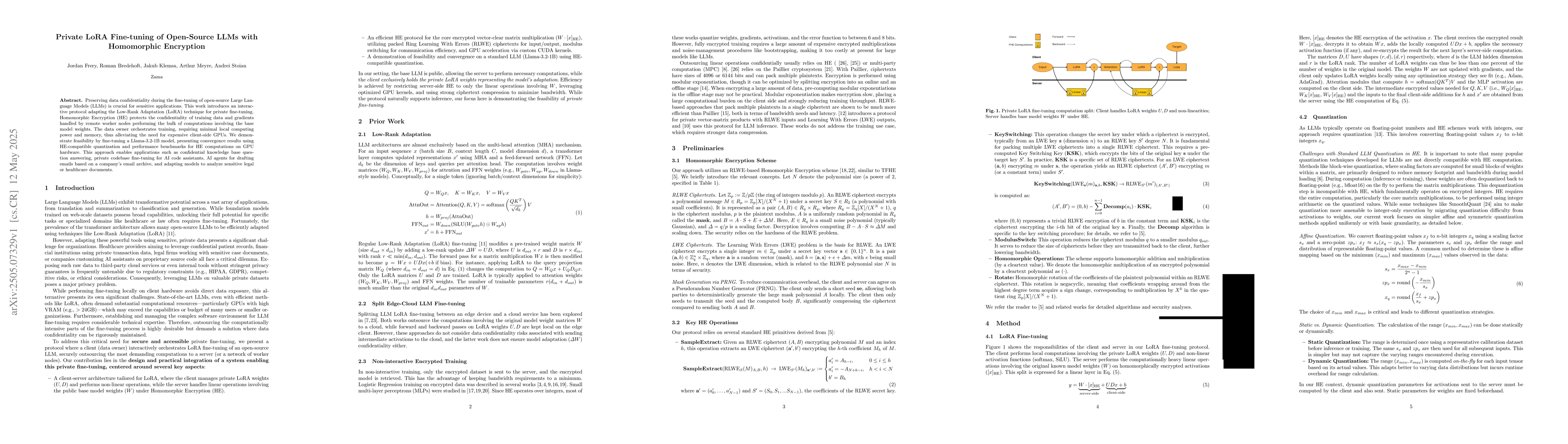 Researchers introduce a method to fine-tune open-source LLMs while preserving data confidentiality using homomorphic encryption, enabling sensitive applications like confidential knowledge base question answering and private codebase fine-tuning.
