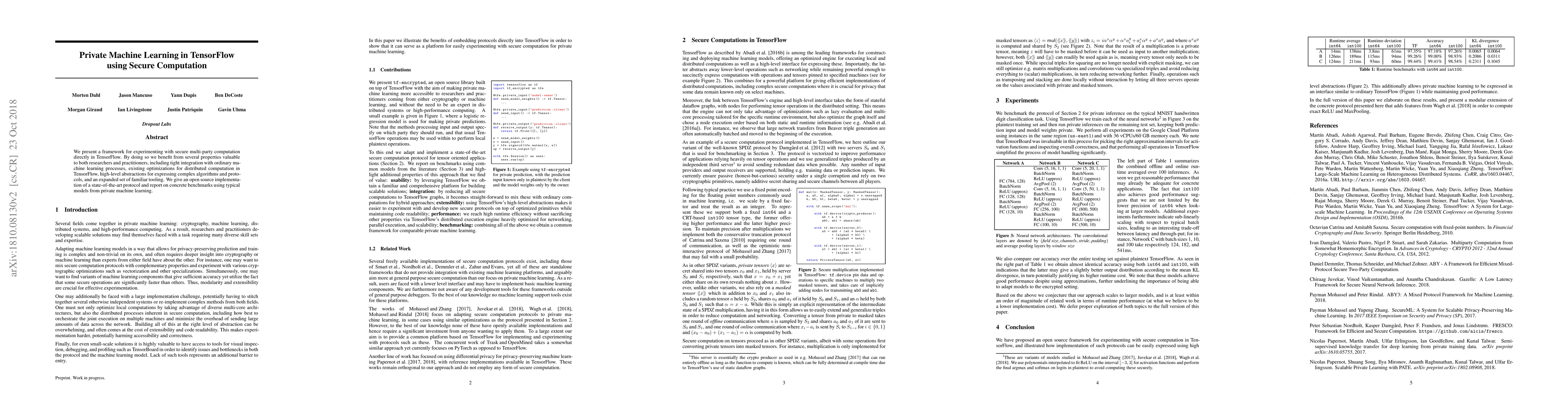 A proposed open-source framework for experimenting with secure computation in TensorFlow