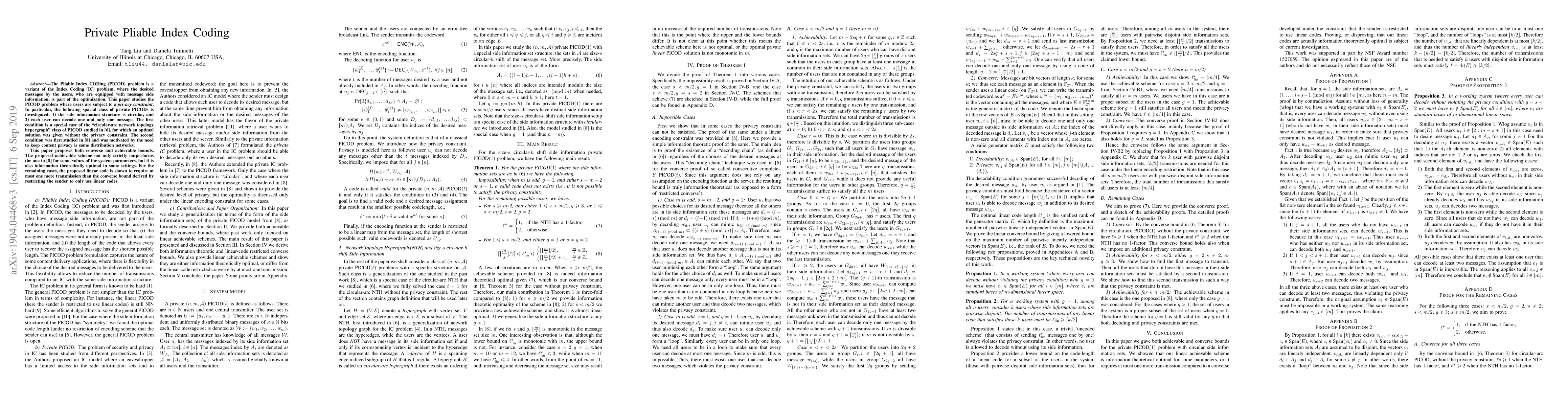 The Pliable Index CODing (PICOD) problem is a variant of the Index Coding (IC) problem, where the desired messages by the users, who are equipped with message side information, is part of the optimization. This paper studies the PICOD problem where users are subject to a privacy constraint. In particular, the following spacial class of private PICODs is investigated: 1) the side information structure is circular, and 2) each user can decode one and only one message. The first condition is a special case of the "circular-arc network topology hypergraph" class of PICOD studied in [Liu and D. Tuninetti, "Tight information theoretic converse results for some pliable index coding problems," ITW, 2018], for which an optimal solution was given without the privacy constraint. The second condition was first studied in [S. Sasi and B. S. Rajan, "On pliable index coding," arXiv:1901.05809] and was motivated by the need to keep content privacy is some distribution networks. This paper proposes both converse and achievable bounds. The proposed achievable scheme not only strictly outperforms the one in [S. Sasi and B. S. Rajan, "On pliable index coding," arXiv:1901.05809] for some values of the system parameters, but it is also information theoretically optimal in some settings. For the remaining cases, the proposed linear code is shown to require at most one more transmission than the converse bound derived by restricting the sender to only use linear codes.