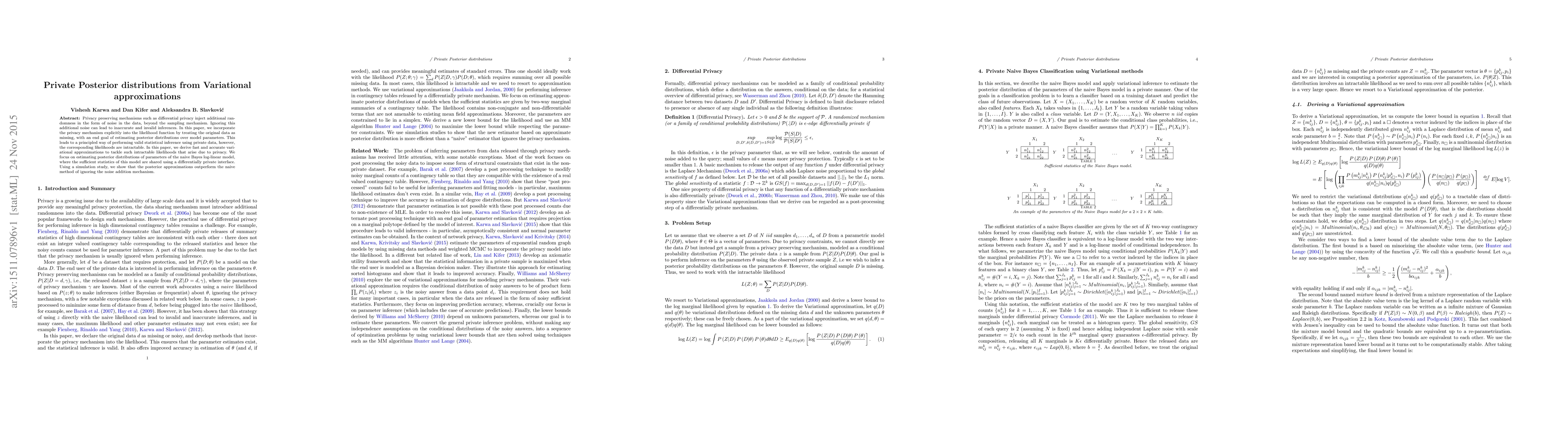 This paper proposes a method to incorporate differential privacy into the likelihood function to estimate posterior distributions over model parameters accurately. It uses variational approximations to handle intractable likelihoods caused by privacy mechanisms, demonstrating improved performance over ignoring the noise in a simulation study.