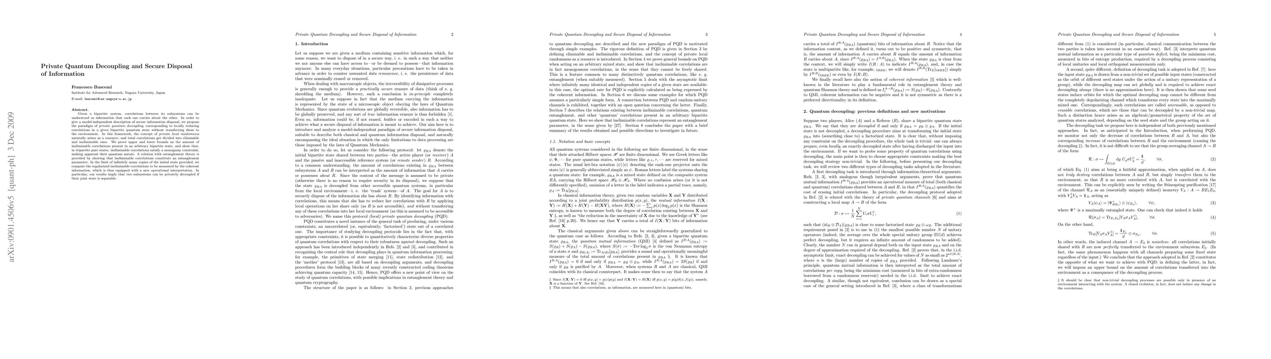 Researchers propose a method to securely dispose of information by locally reducing correlations in a bipartite quantum state without transferring them to the environment. They also show that two subsystems can be privately decoupled if their joint state is separable.