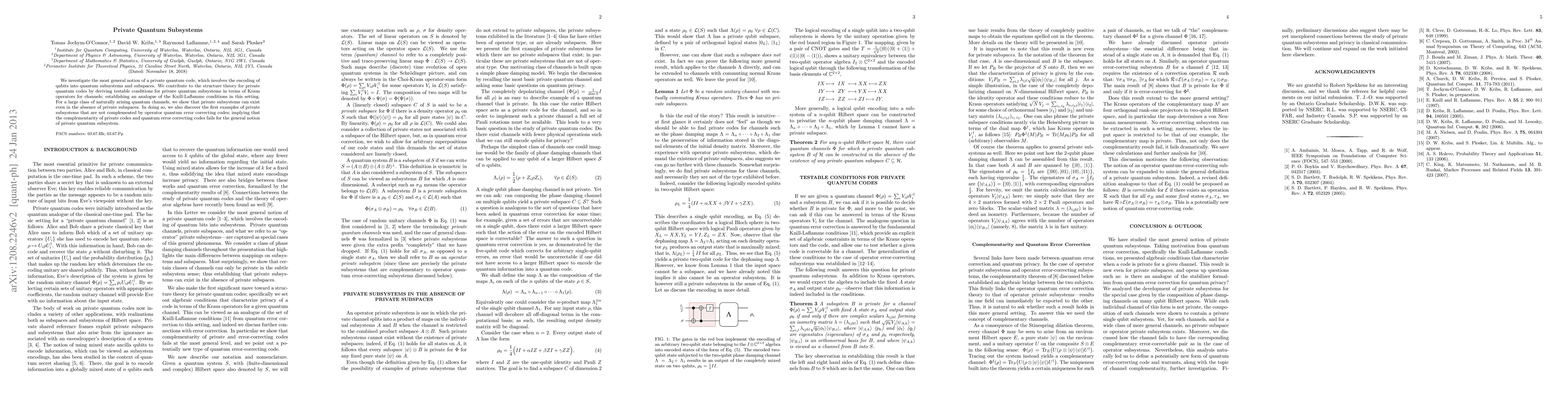 A combination of theoretical and experimental approaches was used to investigate private quantum sub systems.