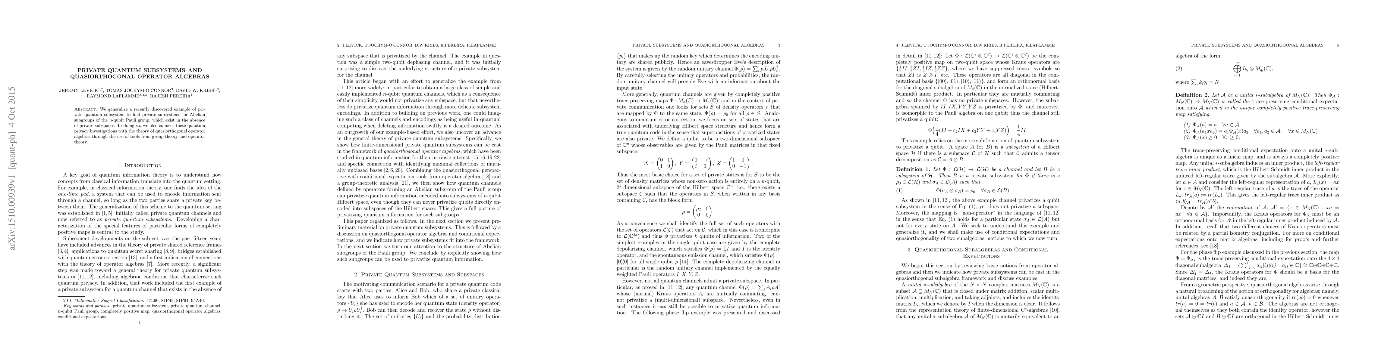 We generalize a recently discovered example of a private quantum subsystem to find private subsystems for Abelian subgroups of the $n$-qubit Pauli group, which exist in the absence of private subspaces. In doing so, we also connect these quantum privacy investigations with the theory of quasiorthogonal operator algebras through the use of tools from group theory and operator theory.