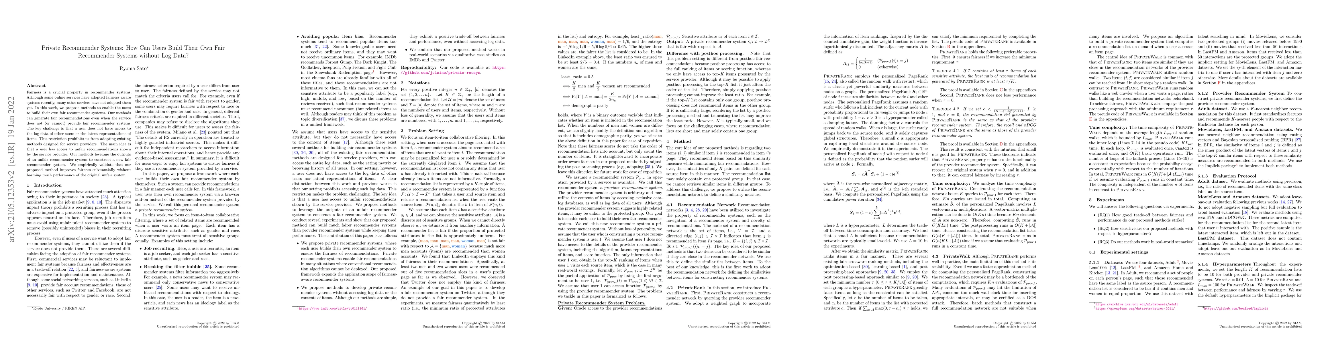 This paper proposes methods for users to build their own fair recommender systems without relying on log data or latent representations, leveraging the outputs of existing unfair systems. The proposed approach significantly improves fairness without substantially affecting the performance of the original unfair system.