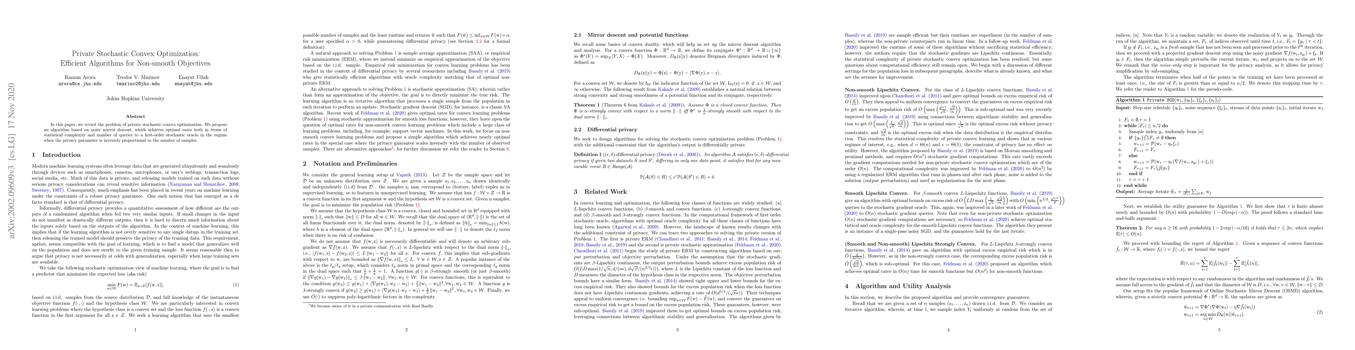 In this paper, we revisit the problem of private stochastic convex optimization. We propose an algorithm based on noisy mirror descent, which achieves optimal rates both in terms of statistical complexity and number of queries to a first-order stochastic oracle in the regime when the privacy parameter is inversely proportional to the number of samples.
