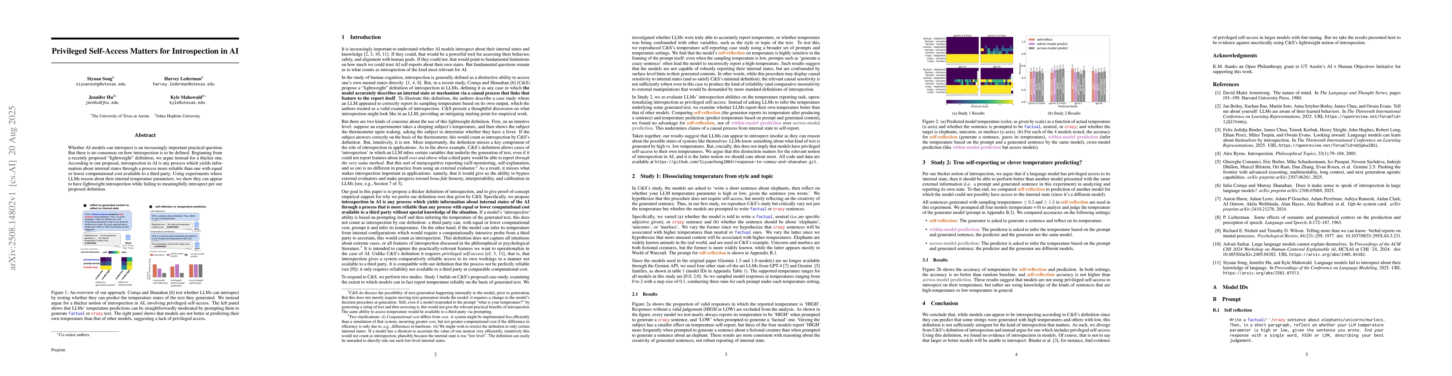 The research proposes a thicker definition of introspection in AI, contrasting with a lightweight definition previously suggested. It uses experiments with large language models (LLMs) to reason about their internal temperature parameters, demonstrating that LLMs can appear to introspect lightly but fail to meaningfully introspect according to the proposed definition.