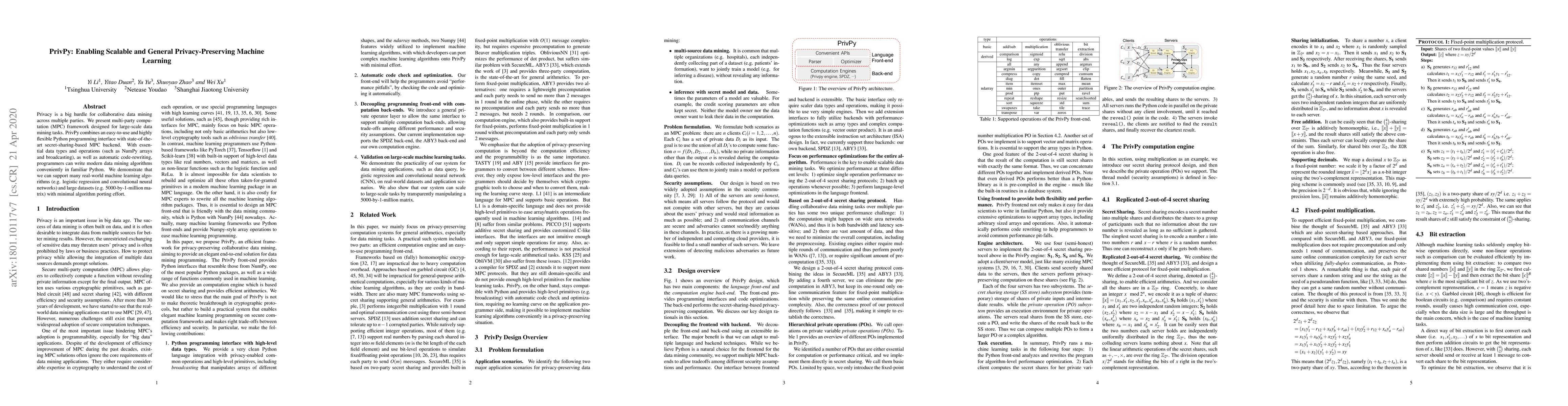 PrivPy is a framework for scalable and general privacy-preserving machine learning that enables users to write modern algorithms in Python while balancing security and performance. It demonstrates usability and scalability with common models and real-world datasets on competing cloud providers.
