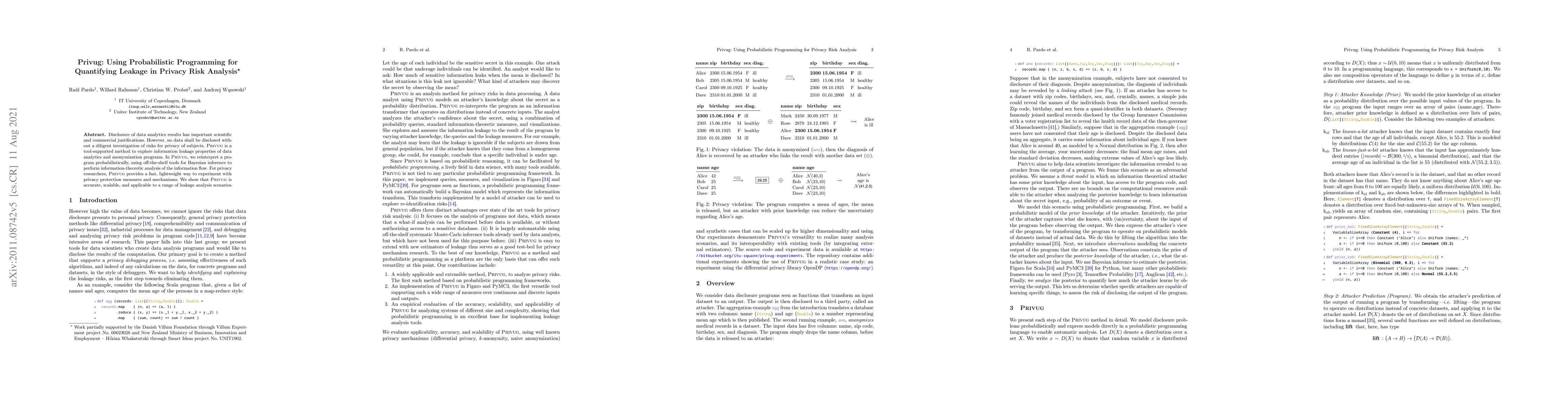 Privug employs probabilistic programming and Bayesian inference to analyze information leakage in data analytics and anonymization programs. It offers privacy researchers a scalable, accurate tool for experimenting with privacy protection measures.