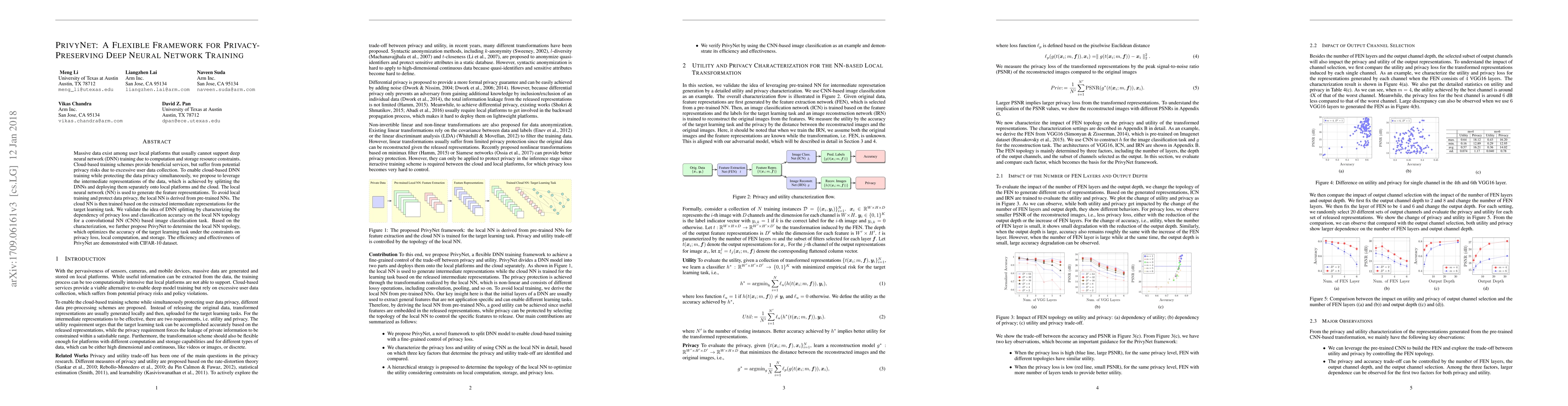 PrivyNet proposes a flexible framework for privacy-preserving deep neural network training by splitting the network and leveraging intermediate data representations. It optimizes local neural network topology to balance accuracy and privacy while minimizing local training and data exposure.