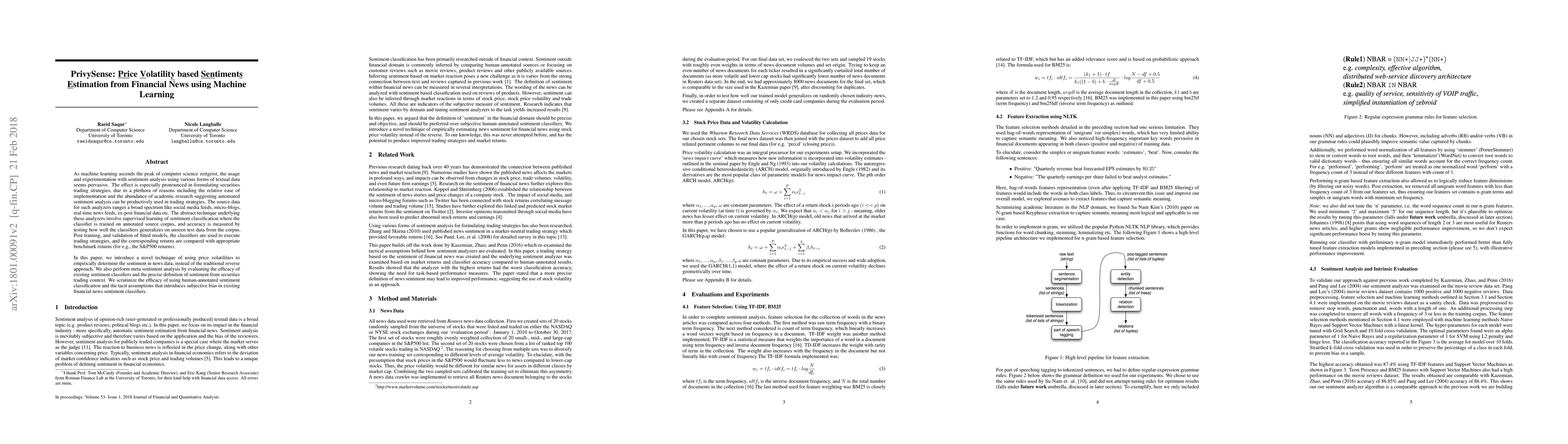 This paper introduces a novel approach to sentiment analysis in financial news using price volatilities, evaluating existing classifiers and human-annotated sentiment for bias.