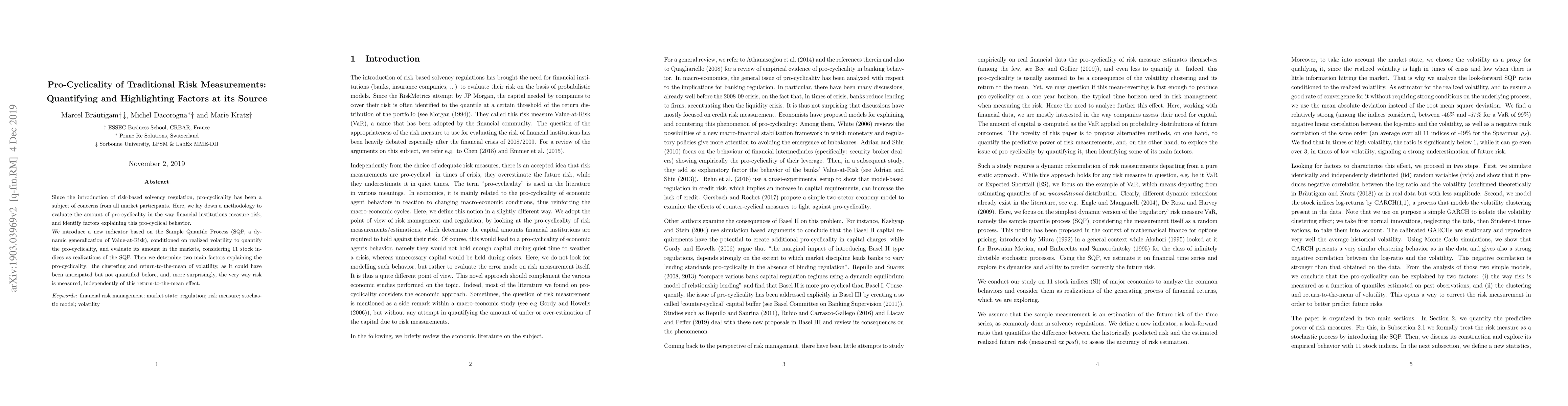 Since the introduction of risk-based solvency regulation, pro-cyclicality has been a subject of concerns from all market participants. Here, we lay down a methodology to evaluate the amount of pro-cyclicality in the way finnancial institutions measure risk, and identify factors explaining this pro-cyclical behavior. We introduce a new indicator based on the Sample Quantile Process (SQP, a dynamic generalization of Value-at-Risk), conditioned on realized volatility to quantify the pro-cyclicality, and evaluate its amount in the markets, considering 11 stock indices as realizations of the SQP. Then we determine two main factors explaining the pro-cyclicality: the clustering and return-to-the-mean of volatility, as it could have been anticipated but not quantified before, and, more surprisingly, the very way risk is measured, independently of this return-to-the-mean effect.