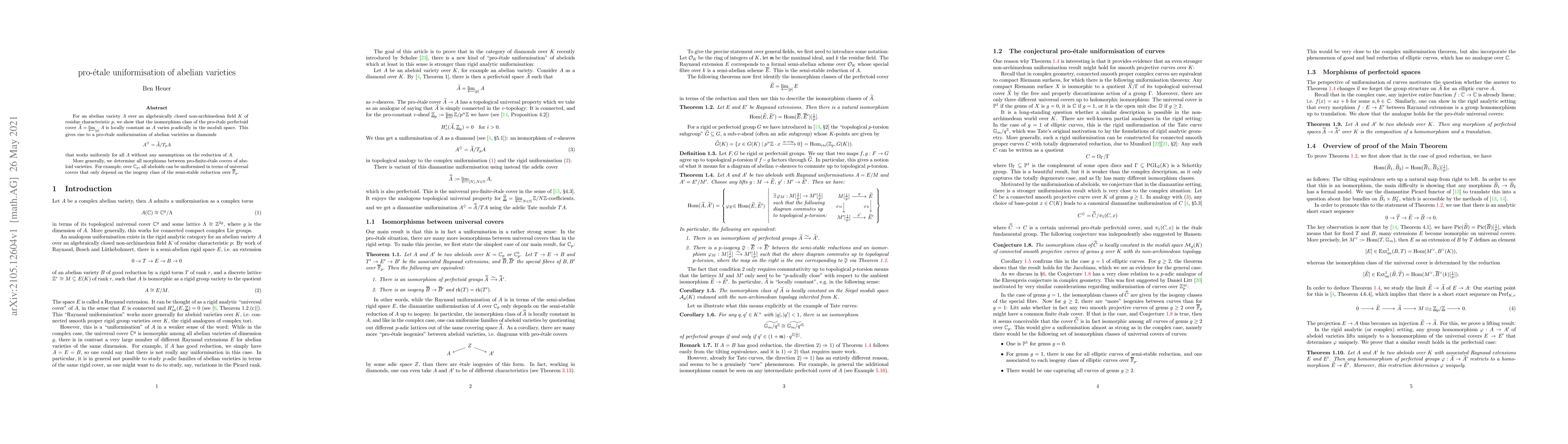 This paper demonstrates that abelian varieties over non-archimedean fields have a locally constant pro-étale perfectoid cover, leading to a uniform pro-étale uniformisation using diamonds, applicable regardless of the reduction type. It also explores morphisms between pro-finite-étale covers of abelian varieties, showing they depend on the isogeny class of the semi-stable reduction.