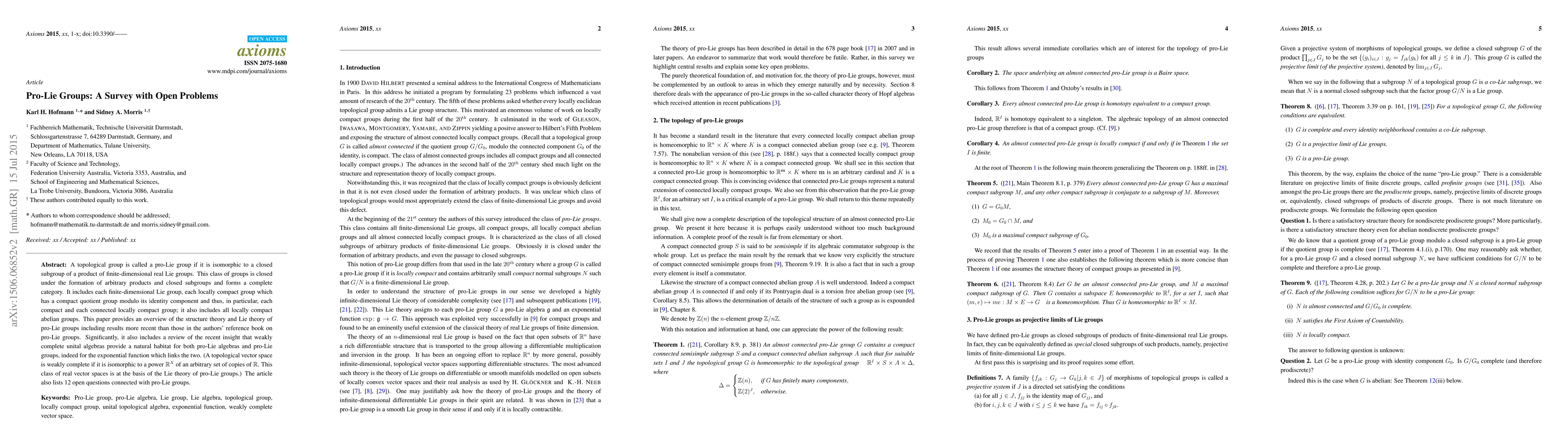 This paper surveys the structure and Lie theory of pro-Lie groups, highlighting their formation from products of finite-dimensional real Lie groups and connections to weakly complete unital algebras. It lists 12 open research questions related to pro-Lie groups.