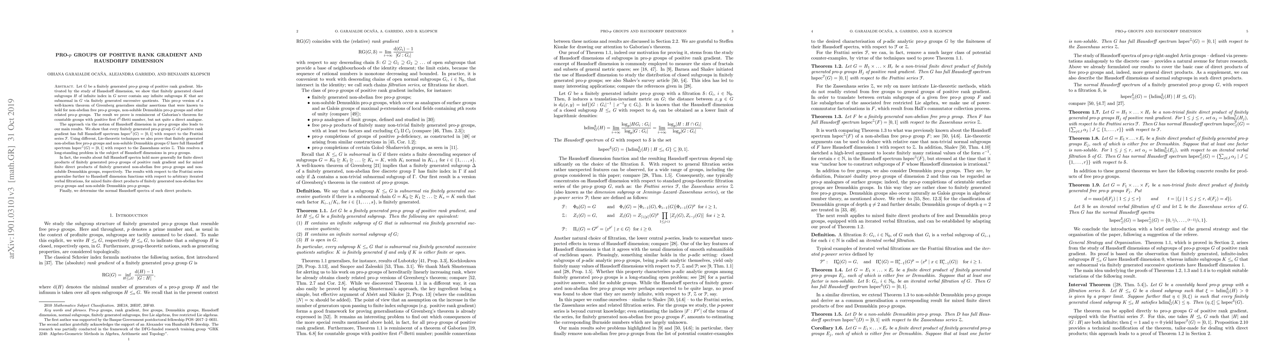 Let $G$ be a finitely generated pro-$p$ group of positive rank gradient. Motivated by the study of Hausdorff dimension, we show that finitely generated closed subgroups $H$ of infinite index in $G$ never contain any infinite subgroups $K$ that are subnormal in~$G$ via finitely generated successive quotients. This pro-$p$ version of a well-known theorem of Greenberg generalises similar assertions that were known to hold for non-abelian free pro-$p$ groups, non-soluble Demushkin pro-$p$ groups and other related pro-$p$ groups. The result we prove is reminiscent of Gaboriau's theorem for countable groups with positive first $\ell^2$-Betti number, but not quite a direct analogue. The approach via the notion of Hausdorff dimension in pro-$p$ groups also leads to our main results. We show that every finitely generated pro-$p$ group $G$ of positive rank gradient has full Hausdorff spectrum $\text{hspec}^\mathcal{F}(G) = [0,1]$ with respect to the Frattini series~$\mathcal{F}$. Using different, Lie-theoretic techniques we also prove that finitely generated non-abelian free pro-$p$ groups and non-soluble Demushkin groups $G$ have full Hausdorff spectrum $\text{hspec}^\mathcal{Z}(G) = [0,1]$ with respect to the Zassenhaus series~$\mathcal{Z}$. This resolves a long-standing problem in the subject of Hausdorff dimensions in pro-$p$ groups. The results about full Hausdorff spectra hold more generally for finite direct products of finitely generated pro-$p$ groups of positive rank gradient and for mixed finite direct products of finitely generated non-abelian free pro-$p$ groups and non-soluble Demushkin groups, respectively. Analogously, the aforementioned results with respect to the Frattini series generalise further to Hausdorff dimension functions with respect to arbitrary iterated verbal filtrations. Finally, we determine the normal Hausdorff spectra of such direct products.