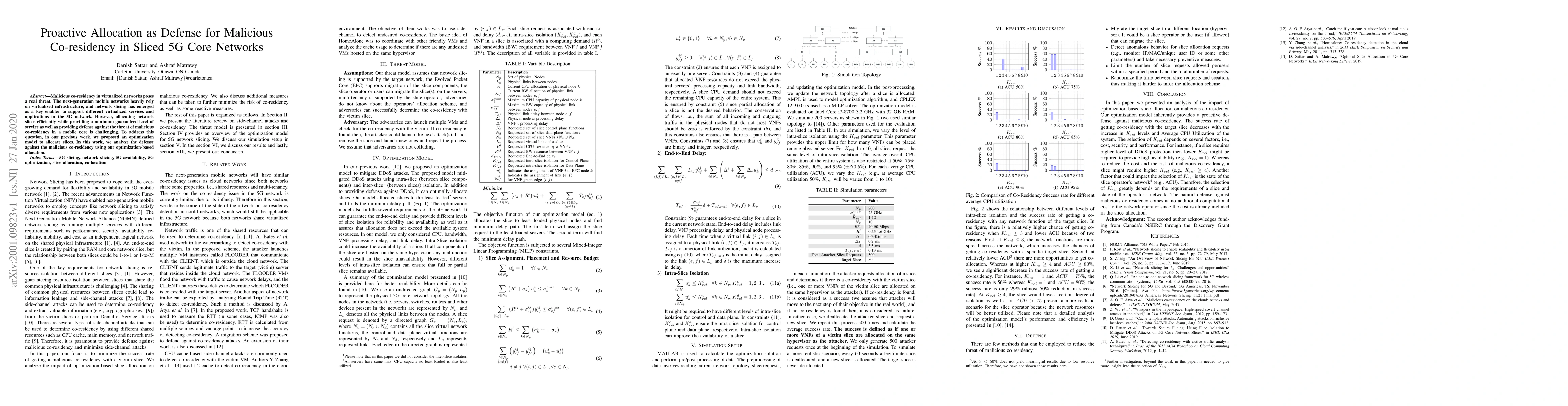 Malicious co-residency in virtualized networks poses a real threat. The next-generation mobile networks heavily rely on virtualized infrastructure, and network slicing has emerged as a key enabler to support different virtualized services and applications in the 5G network. However, allocating network slices efficiently while providing a minimum guaranteed level of service as well as providing defense against the threat of malicious co-residency in a mobile core is challenging. To address this question, in our previous work, we proposed an optimization model to allocate slices. In this work, we analyze the defense against the malicious co-residency using our optimization-based allocation.