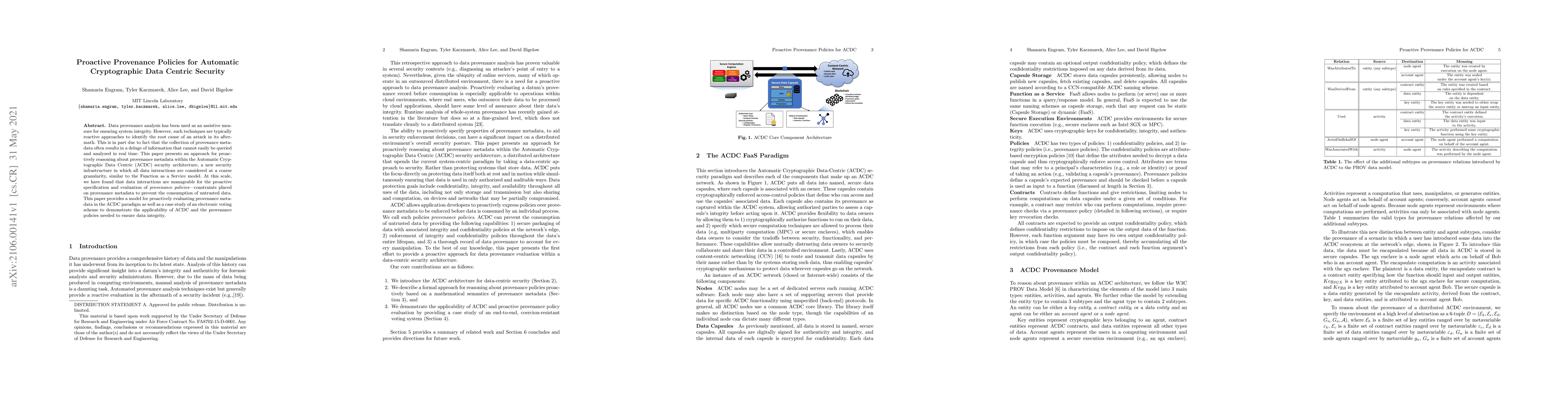 This paper introduces proactive provenance policies within the Automatic Cryptographic Data Centric (ACDC) security architecture to preemptively manage and evaluate data interactions, contrasting with traditional reactive approaches. It demonstrates the model's effectiveness through a case study on an electronic voting scheme.