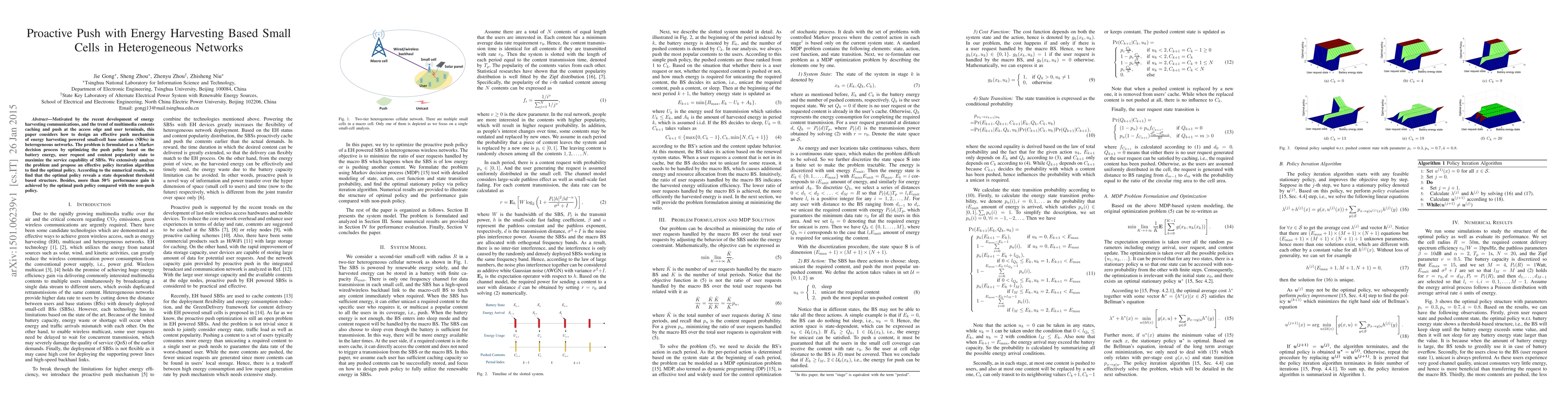 This paper designs an effective push mechanism for energy harvesting small-cell base stations in heterogeneous networks, formulated as a Markov decision process to maximize service capability. The proposed policy iteration algorithm achieves over 50% performance gain compared to non-push policies, demonstrating a state-dependent threshold structure.