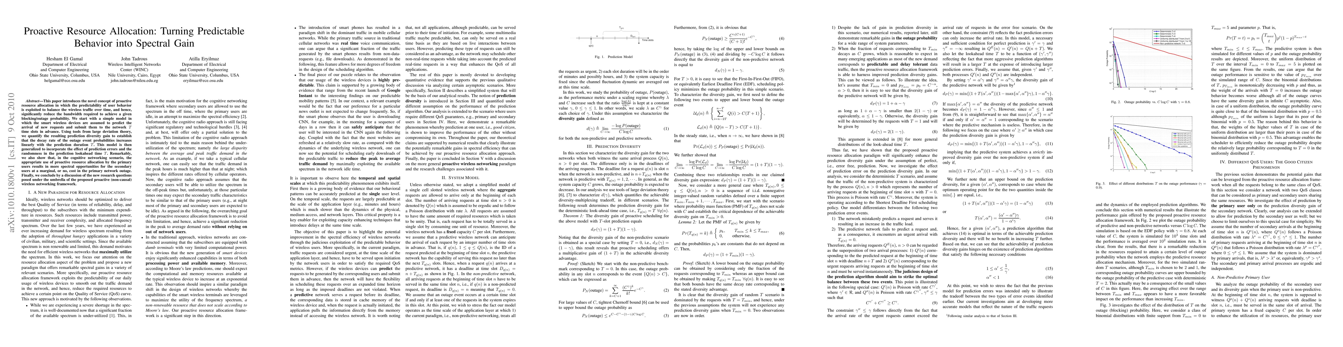 This paper proposes proactive resource allocation leveraging user behavior predictability to optimize wireless traffic and reduce bandwidth needs. It demonstrates that prediction diversity gain increases with prediction duration, and shows cognitive networking benefits for secondary users with minimal impact on primary network performance.