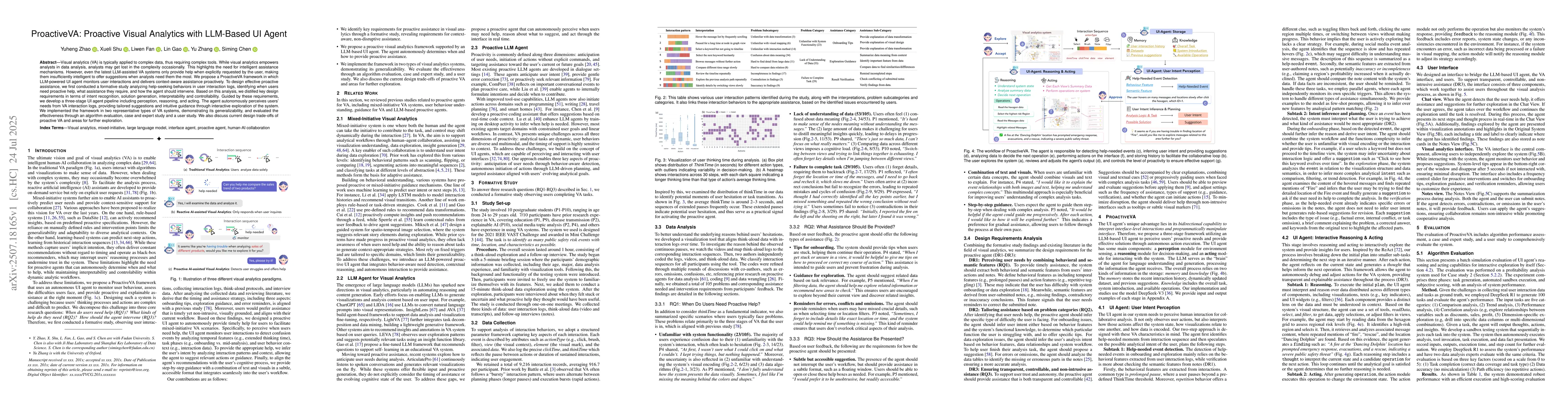 Visual analytics (VA) is typically applied to complex data, thus requiring complex tools. While visual analytics empowers analysts in data analysis, analysts may get lost in the complexity occasionally. This highlights the need for intelligent assistance mechanisms. However, even the latest LLM-assisted VA systems only provide help when explicitly requested by the user, making them insufficiently intelligent to offer suggestions when analysts need them the most. We propose a ProactiveVA framework in which LLM-powered UI agent monitors user interactions and delivers context-aware assistance proactively. To design effective proactive assistance, we first conducted a formative study analyzing help-seeking behaviors in user interaction logs, identifying when users need proactive help, what assistance they require, and how the agent should intervene. Based on this analysis, we distilled key design requirements in terms of intent recognition, solution generation, interpretability and controllability. Guided by these requirements, we develop a three-stage UI agent pipeline including perception, reasoning, and acting. The agent autonomously perceives users' needs from VA interaction logs, providing tailored suggestions and intuitive guidance through interactive exploration of the system. We implemented the framework in two representative types of VA systems, demonstrating its generalizability, and evaluated the effectiveness through an algorithm evaluation, case and expert study and a user study. We also discuss current design trade-offs of proactive VA and areas for further exploration.