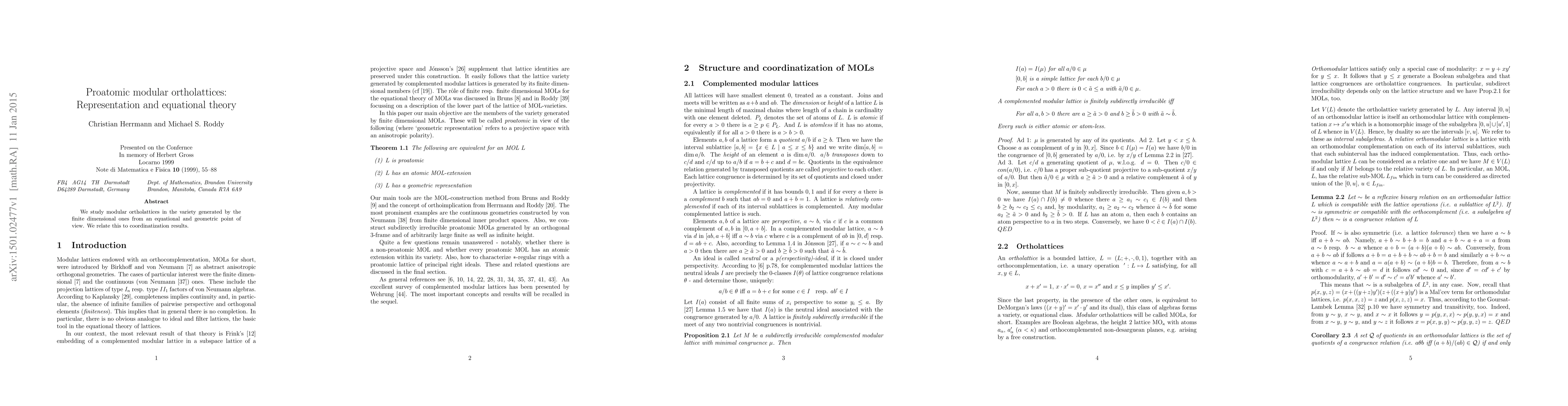 Researchers studied modular ortholattices to understand their representation and equational theory, relating it to coordinatization results, with potential implications for algebraic structures.