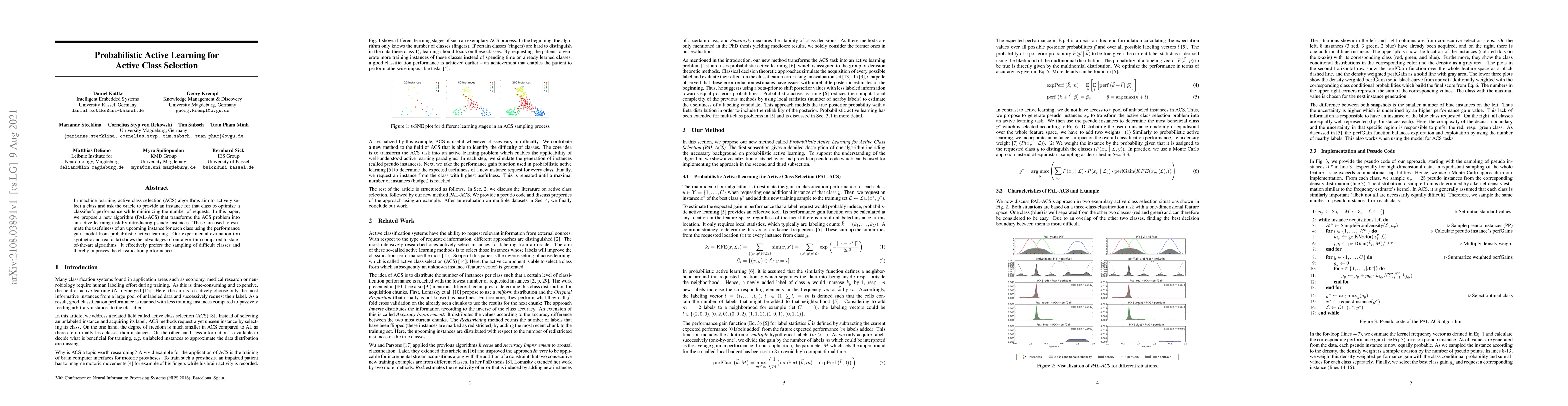 This paper introduces PAL-ACS, a new probabilistic active class selection algorithm that leverages pseudo instances to estimate the usefulness of instances for each class, optimizing classifier performance while minimizing queries. Experimental results demonstrate its effectiveness in sampling difficult classes and improving classification performance compared to state-of-the-art methods.