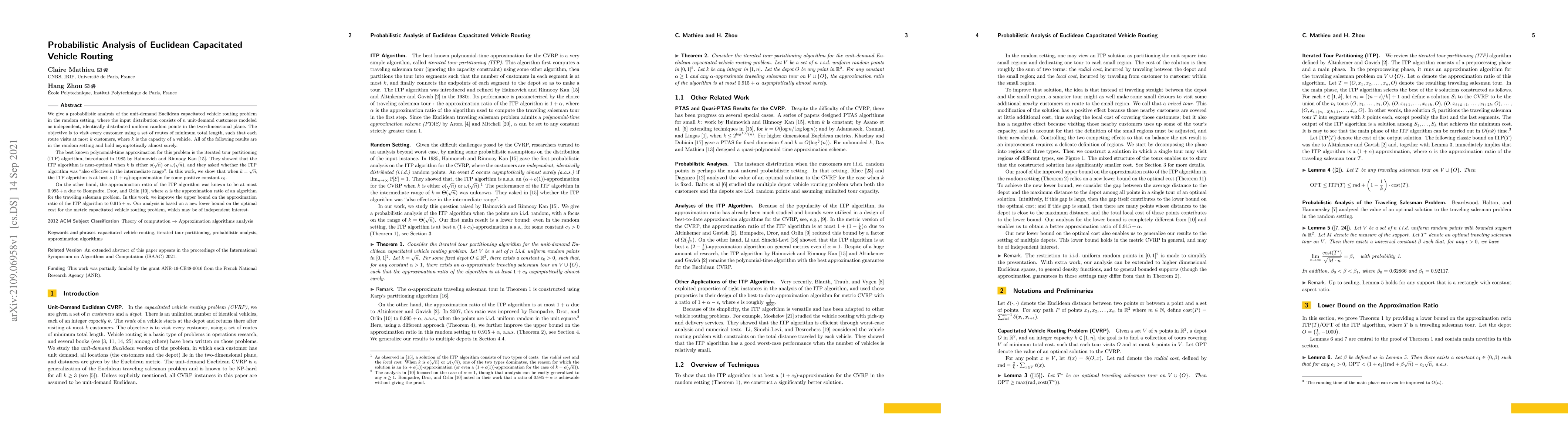 We give a probabilistic analysis of the unit-demand Euclidean capacitated vehicle routing problem in the random setting, where the input distribution consists of $n$ unit-demand customers modeled as independent, identically distributed uniform random points in the two-dimensional plane. The objective is to visit every customer using a set of routes of minimum total length, such that each route visits at most $k$ customers, where $k$ is the capacity of a vehicle. All of the following results are in the random setting and hold asymptotically almost surely. The best known polynomial-time approximation for this problem is the iterated tour partitioning (ITP) algorithm, introduced in 1985 by Haimovich and Rinnooy Kan. They showed that the ITP algorithm is near-optimal when $k$ is either $o(\sqrt{n})$ or $\omega(\sqrt{n})$, and they asked whether the ITP algorithm was also effective in the intermediate range. In this work, we show that when $k=\sqrt{n}$, the ITP algorithm is at best a $(1+c_0)$-approximation for some positive constant $c_0$. On the other hand, the approximation ratio of the ITP algorithm was known to be at most $0.995+\alpha$ due to Bompadre, Dror, and Orlin, where $\alpha$ is the approximation ratio of an algorithm for the traveling salesman problem. In this work, we improve the upper bound on the approximation ratio of the ITP algorithm to $0.915+\alpha$. Our analysis is based on a new lower bound on the optimal cost for the metric capacitated vehicle routing problem, which may be of independent interest.
