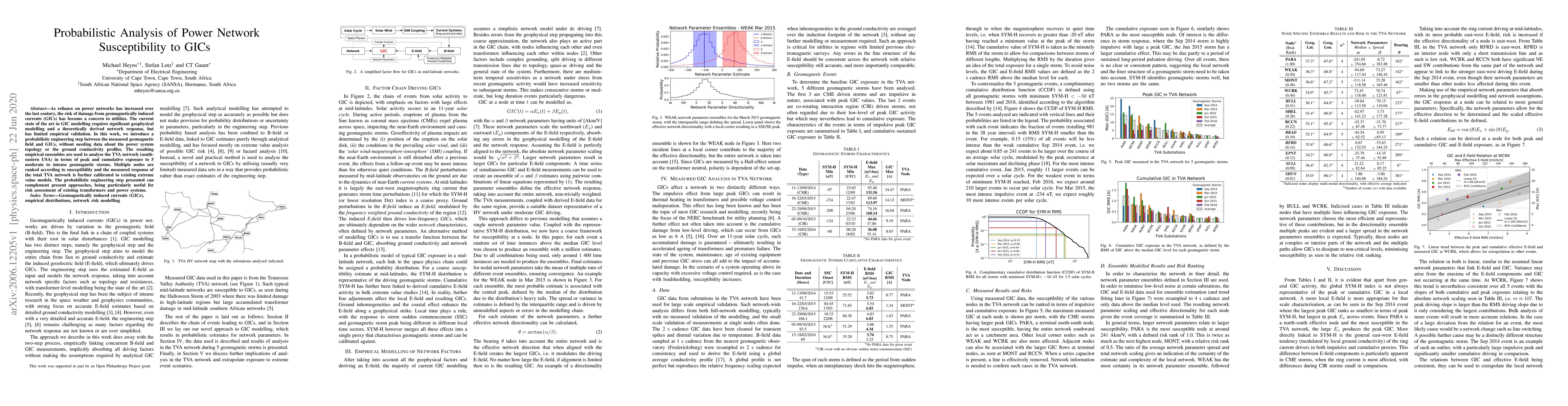 As reliance on power networks has increased over the last century, the risk of damage from geomagnetically induced currents (GICs) has become a concern to utilities. The current state of the art in GIC modelling requires significant geophysical modelling and a theoretically derived network response, but has limited empirical validation. In this work, we introduce a probabilistic engineering step between the measured geomagnetic field and GICs, without needing data about the power system topology or the ground conductivity profiles. The resulting empirical ensembles are used to analyse the TVA network (south-eastern USA) in terms of peak and cumulative exposure to 5 moderate to intense geomagnetic storms. Multiple nodes are ranked according to susceptibility and the measured response of the total TVA network is further calibrated to existing extreme value models. The probabilistic engineering step presented can complement present approaches, being particularly useful for risk assessment of existing transformers and power systems.