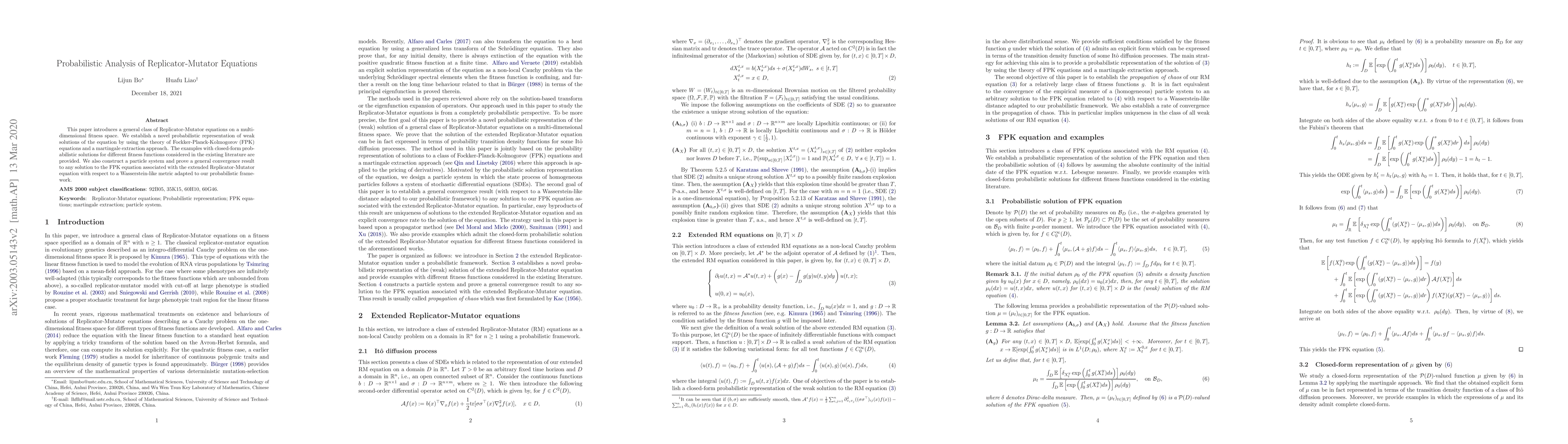 This paper develops a probabilistic framework for Replicator-Mutator equations using FPK equations and martingale techniques, providing closed-form solutions and establishing convergence of a particle system to these solutions under a Wasserstein-like distance.