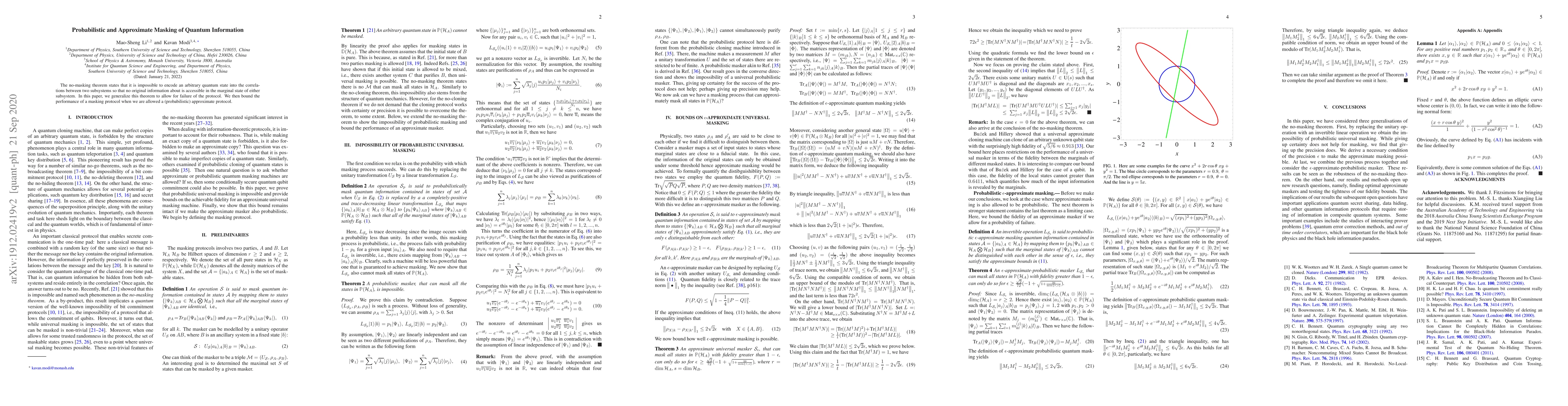 Researchers generalized the no-masking theorem to allow for protocol failure, bounding the performance of probabilistic approximate masking protocols.
