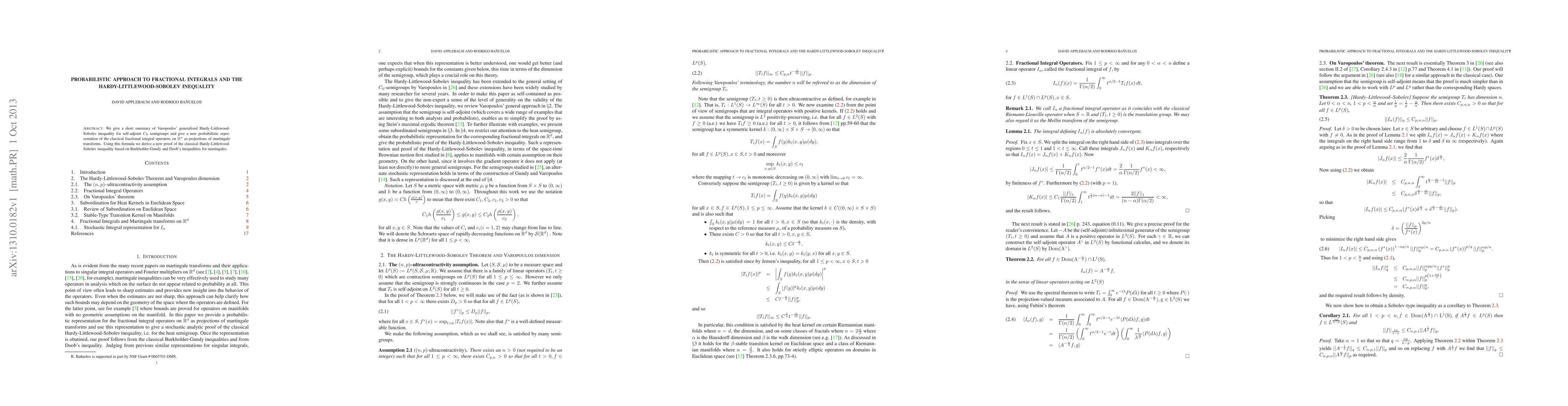 We give a short summary of Varopoulos' generalised Hardy-Littlewood-Sobolev inequality for self-adjoint $C_{0}$ semigroups and give a new probabilistic representation of the classical fractional integral operators on $\R^n$ as projections of martingale transforms. Using this formula we derive a new proof of the classical Hardy-Littlewood-Sobolev inequality based on Burkholder-Gundy and Doob's inequalities for martingales.