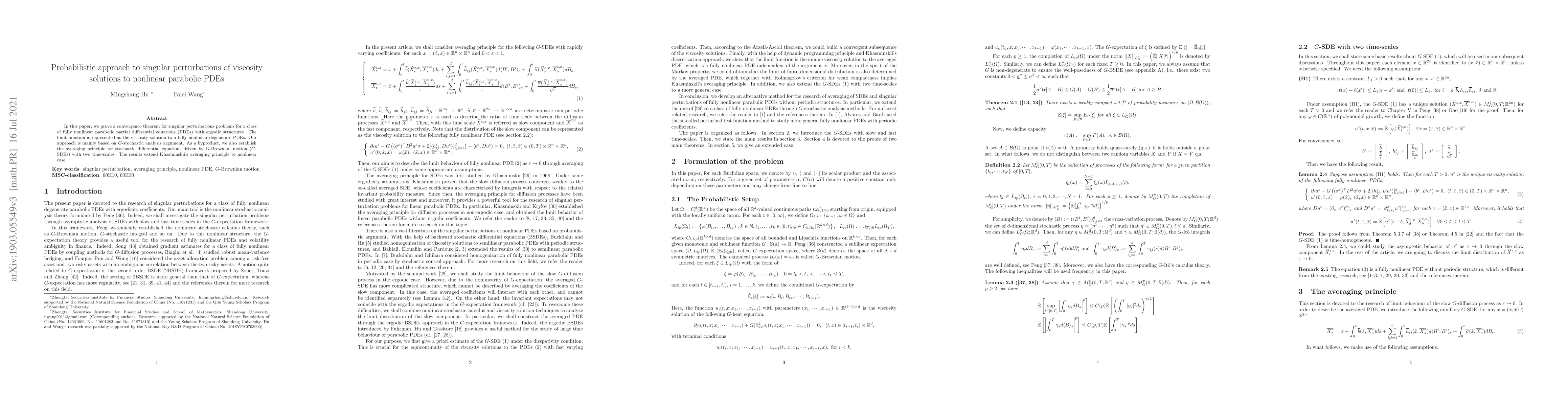 In this paper, we prove a convergence theorem for singular perturbations problems for a class of fully nonlinear parabolic partial differential equations with ergodic structures. The limit function is represented as the viscosity solution to a fully nonlinear degenerate PDEs. Our approach is mainly based on G-stochastic analysis argument. As a byproduct, we also establish the averaging principle for stochastic differential equations driven by G-Brownian motion with two time-scales. The results extend Khasminskii's averaging principle to nonlinear case.