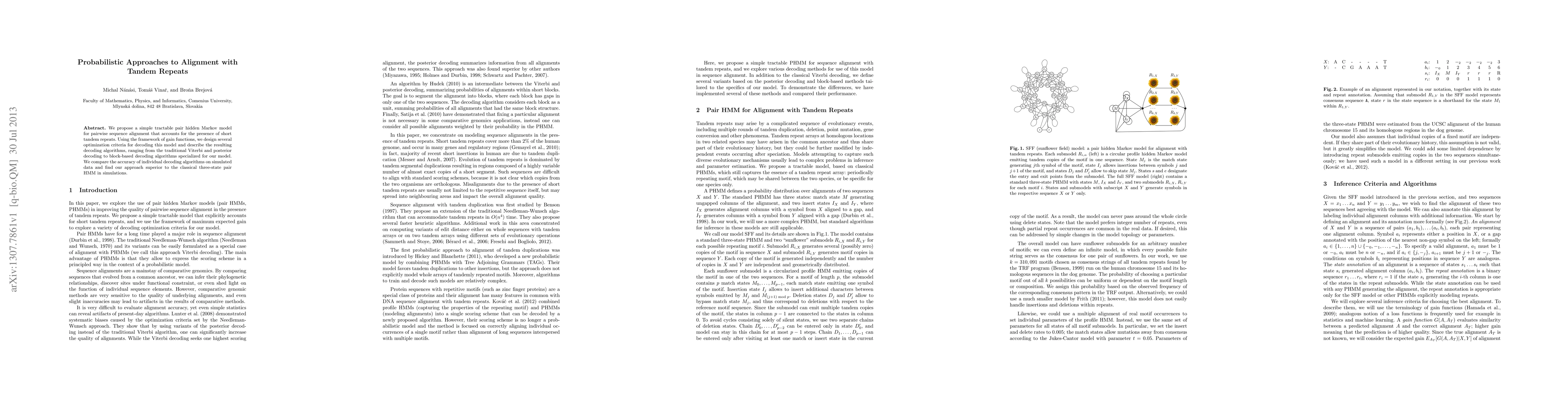 A new probabilistic approach to sequence alignment is proposed that effectively handles short tandem repeats, outperforming traditional methods in simulated data.