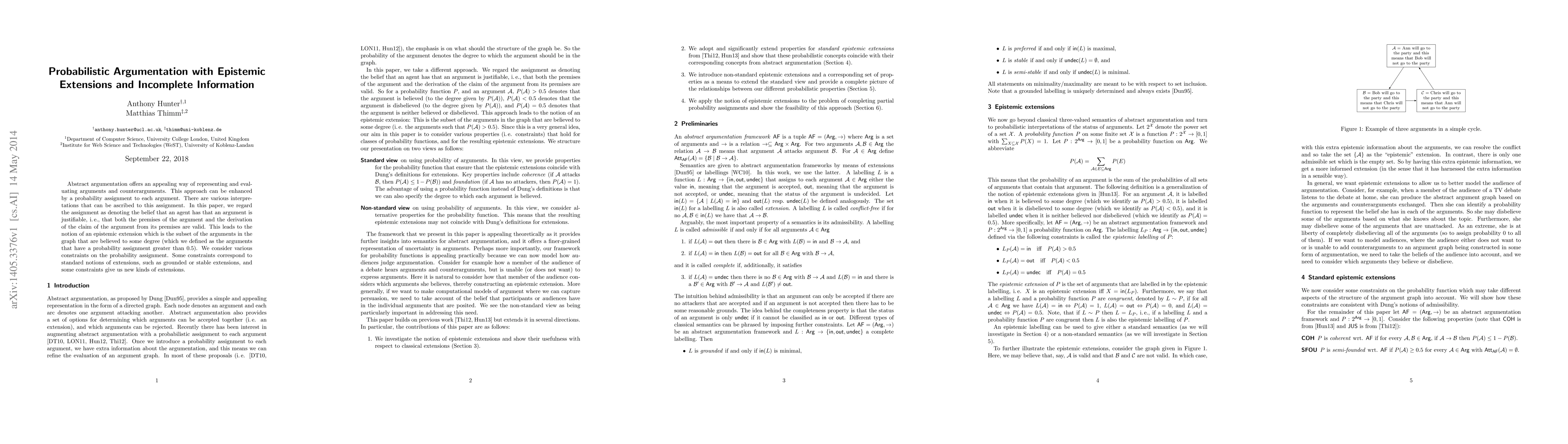 A research paper explores probabilistic argumentation using epistemic extensions, which represent an agent's belief in the justifiability of arguments. It proposes new constraints for probability assignments that lead to innovative kinds of extensions.