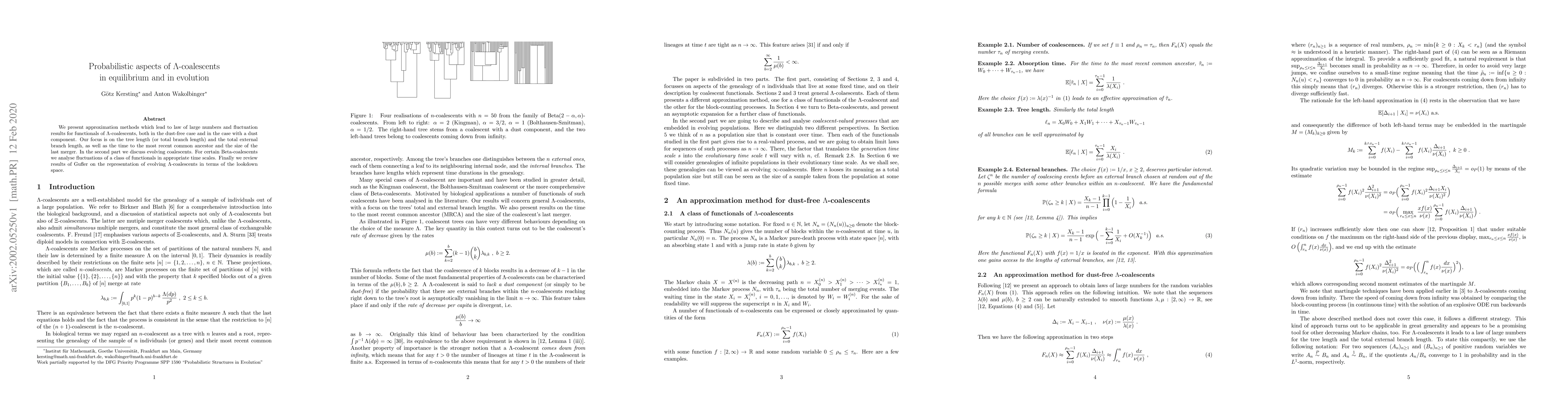 This paper develops approximation methods for $\Lambda$-coalescents, providing law of large numbers and fluctuation results for functionals like tree length and time to the most recent common ancestor. It also examines evolving coalescents, focusing on Beta-coalescents' functional fluctuations and reviews Gufler's representation of evolving $\Lambda$-coalescents via lookdown space.
